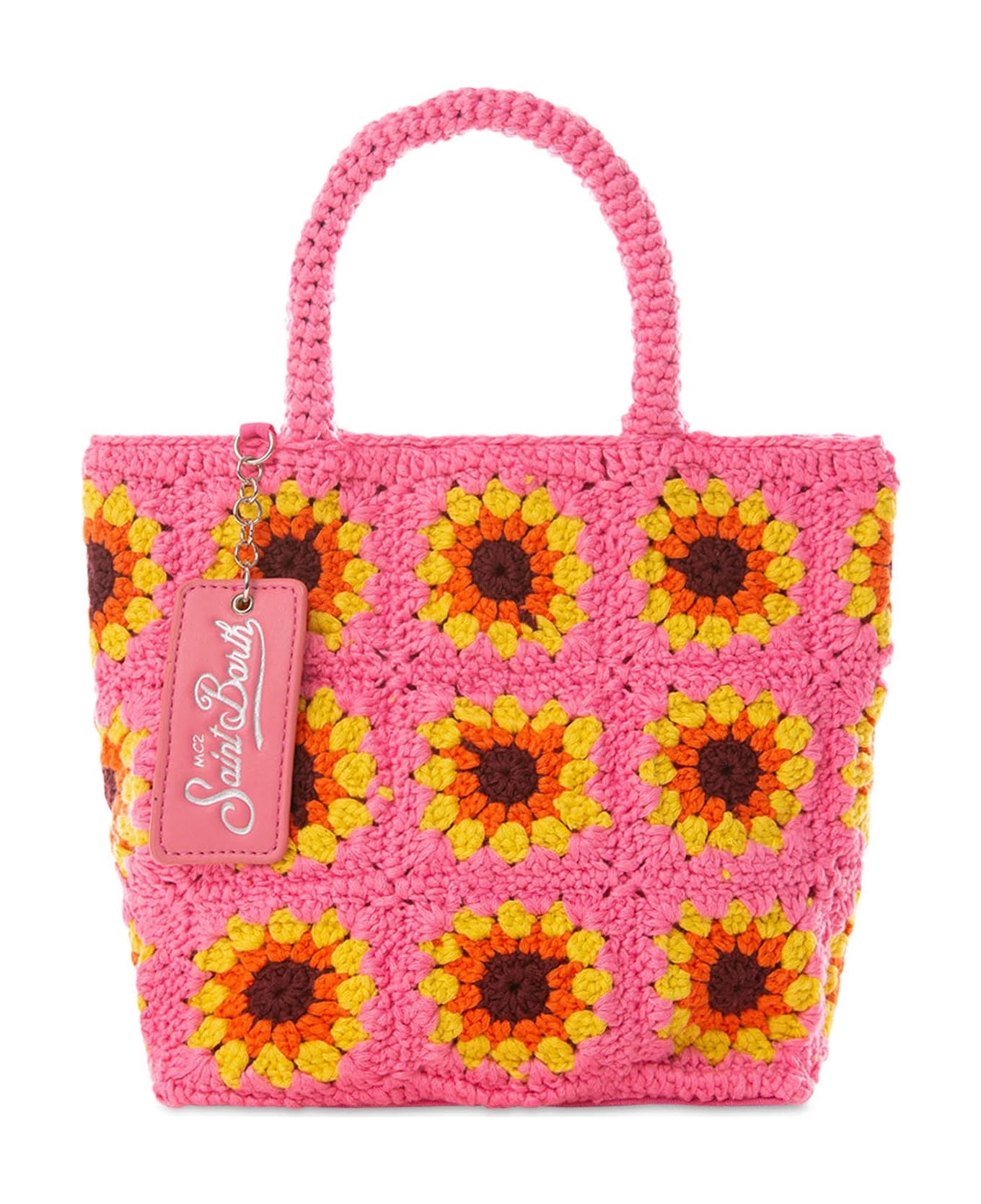 Sunflower embroidery on pink background Sizes: 24 x 22 x 8 cm