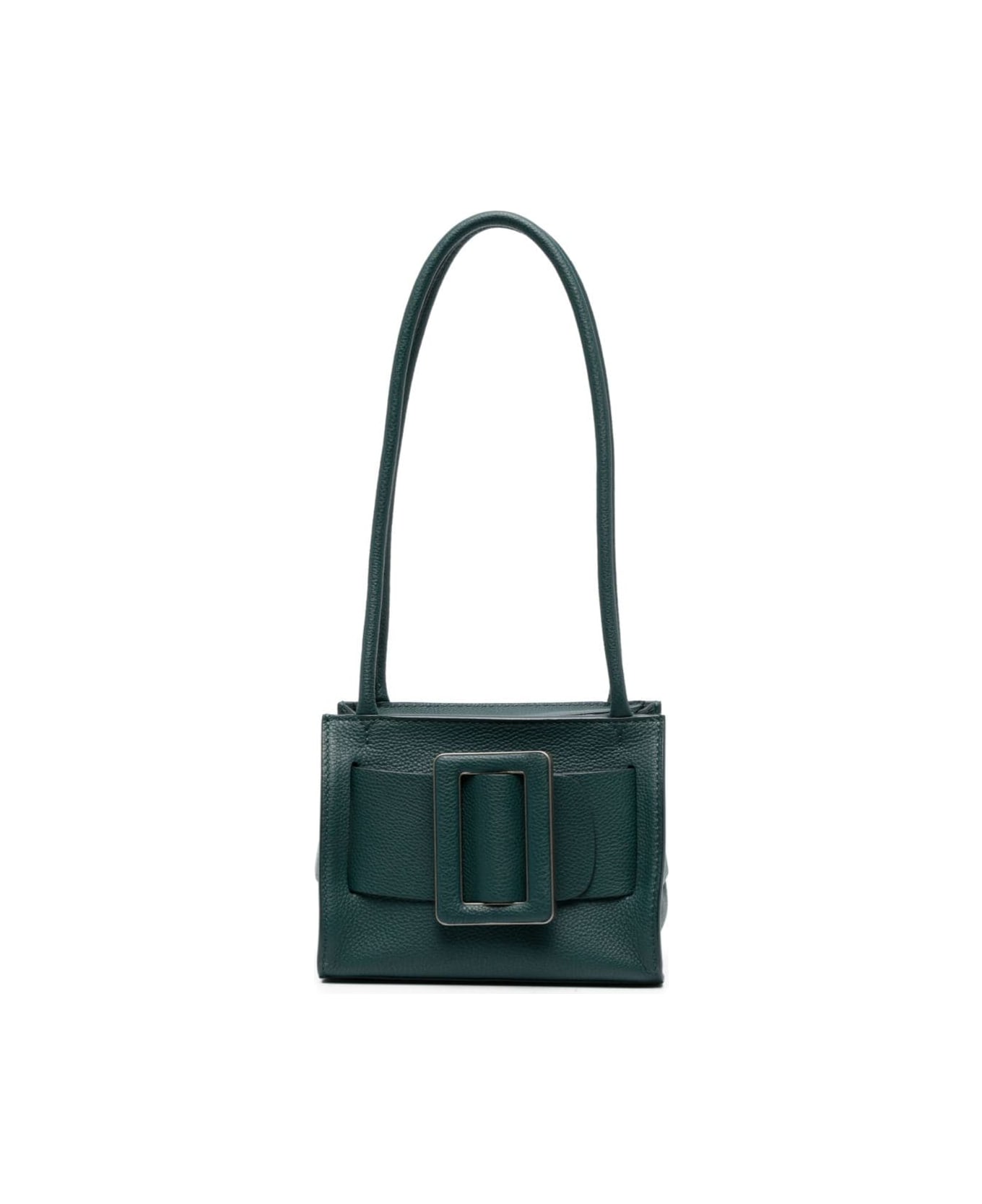 Bobby 18 leather shoulder bag from BOYY featuring teal blue, calf leather, grained texture, decorative buckle detail, engraved logo, top zip fastening, two long top handles and main compartment.