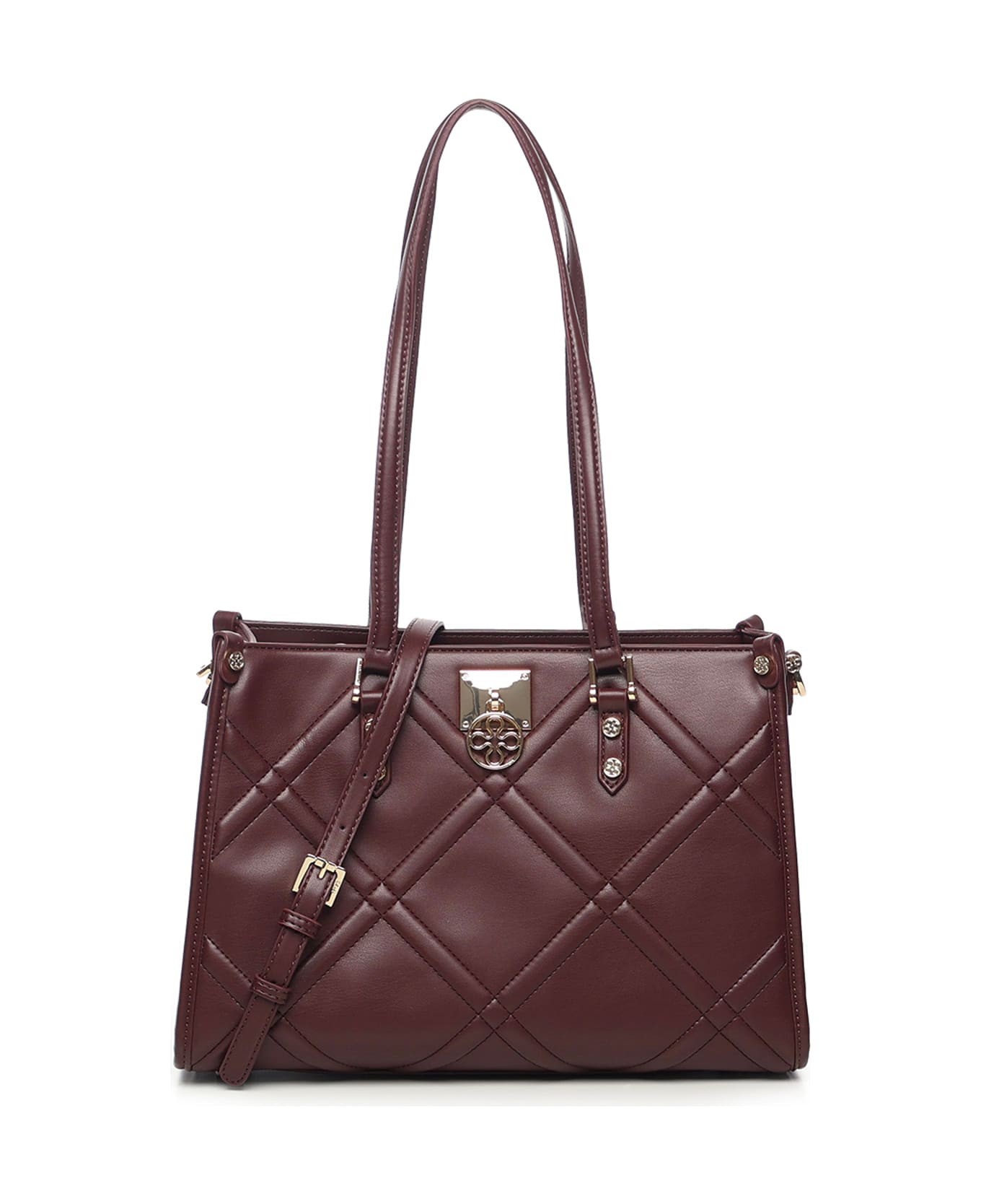 - Made of nappa leather with embossed quilting - Zip closure - Adjustable and removable shoulder strap - Top handles - Logo details - Internal zip pocket - Color: Bordeaux