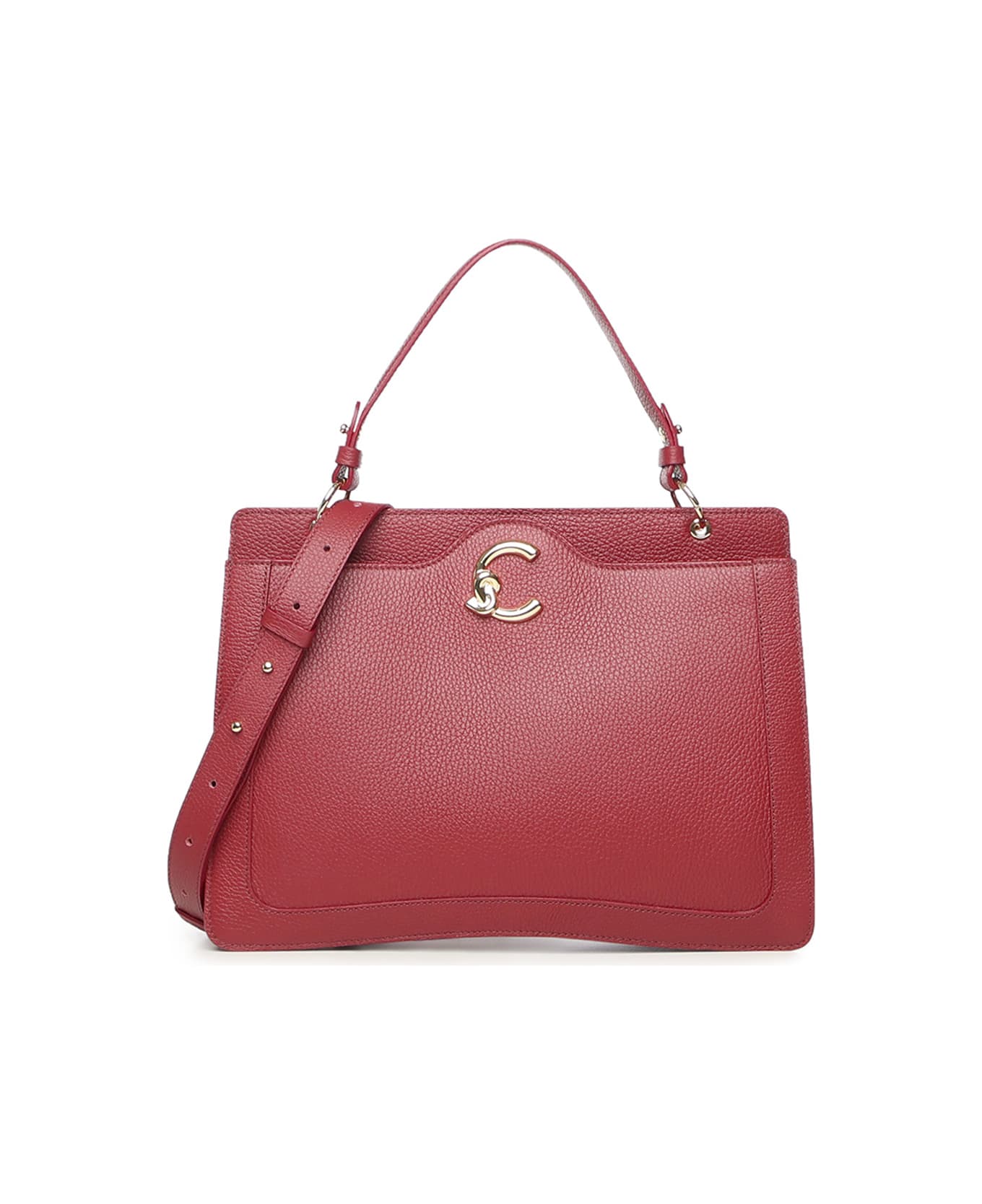 - Made of grained leather - Magnetic and zip closure - Adjustable and removable shoulder strap - Internal zip pocket - Gold-stamped logo - Dimensions: 30 x 20 x 9 cm - Color: Ribes
