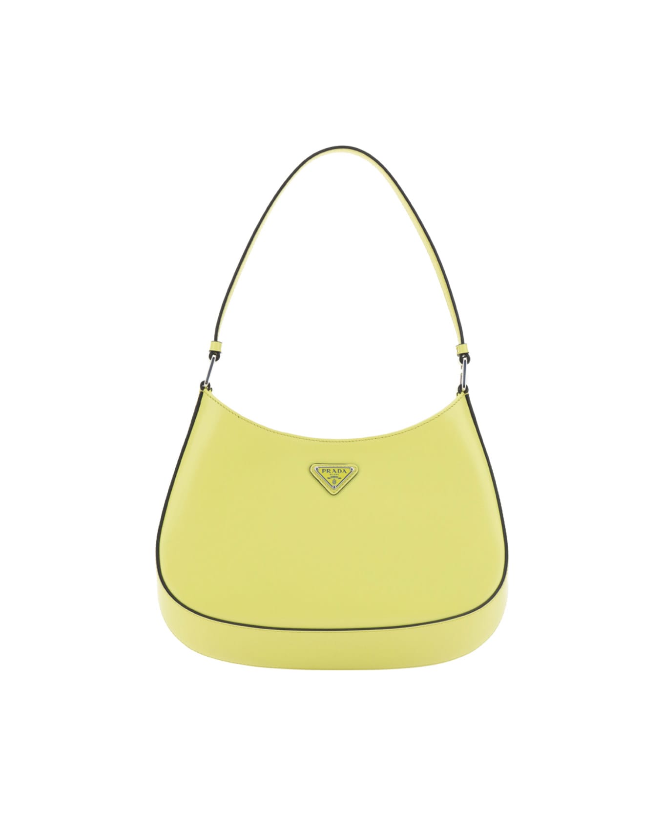 Calfskin cloe shoulder bag by prada, flat leather shoulder strap, interior snap-button closure, interior welt pocket, iconic enameled triangular brand signature plaque applied to front. Composition: 100% % Calf Leather Bos Taurus