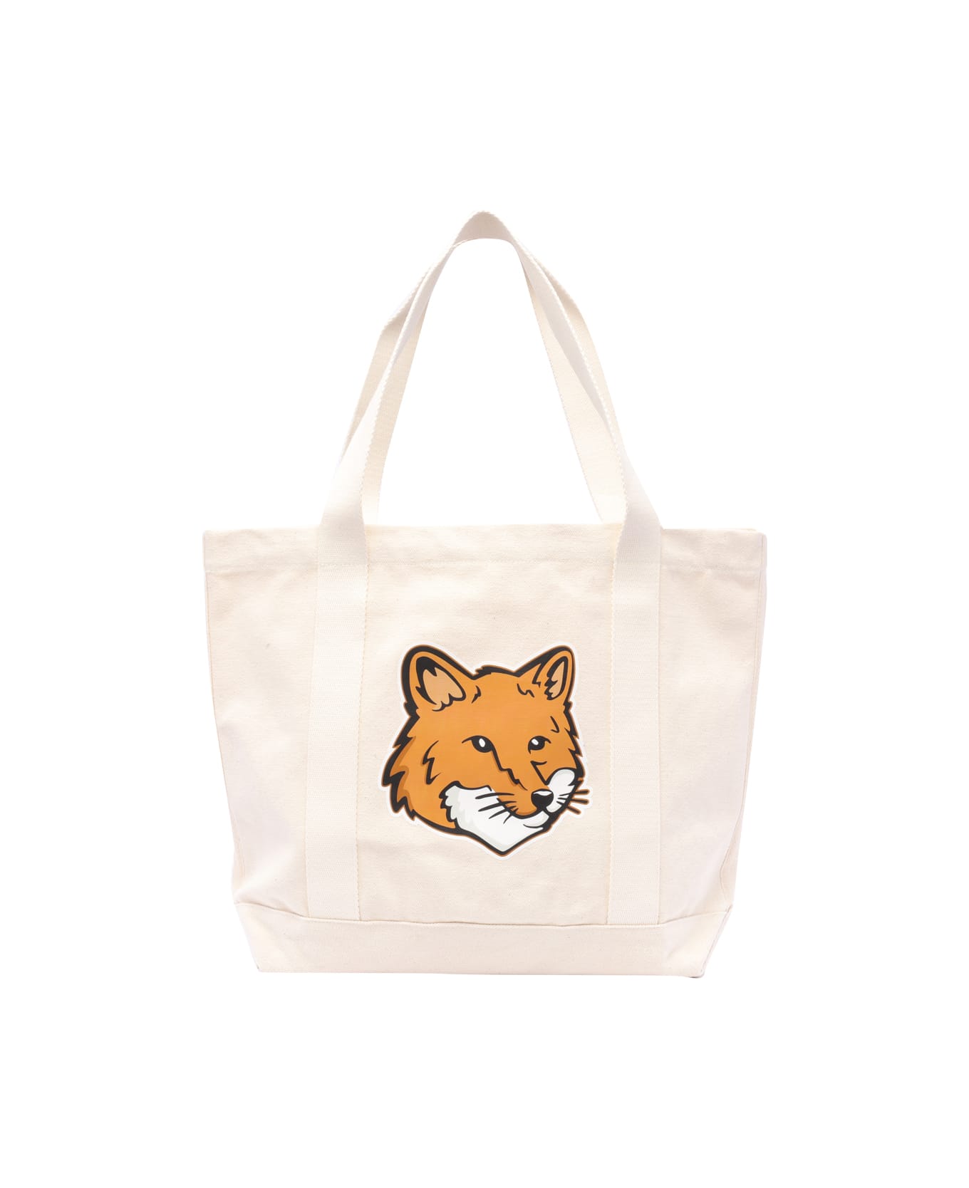 Maison Kitsune' beige Fox head tote bag, inner open pocket, 2 hadles, frontal patch logo