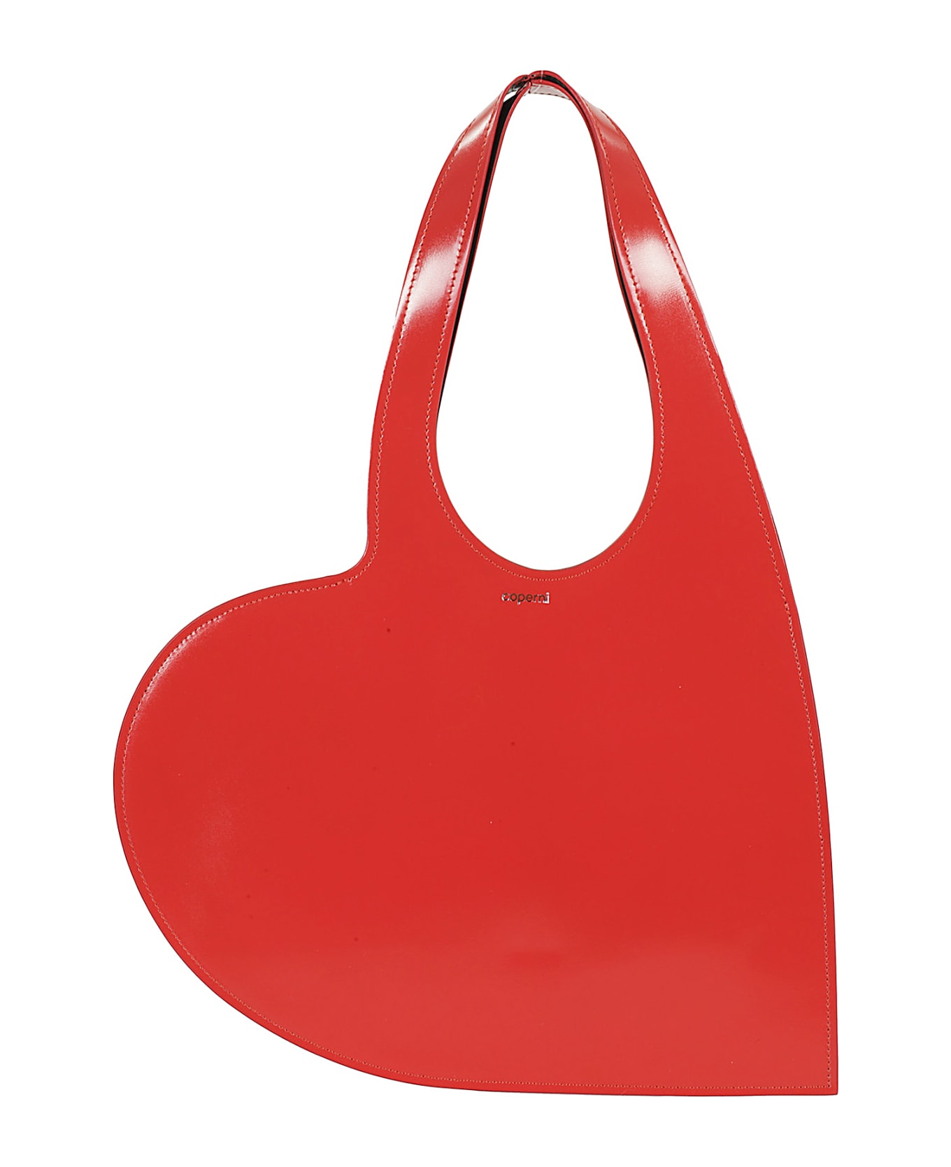 Mini Heart Tote bag - Coperni - Red color - Made of shiny leather - Heart design - Double top handles - Screen printed front logo - Dimensions: Height 46 cm, Width 33 cm