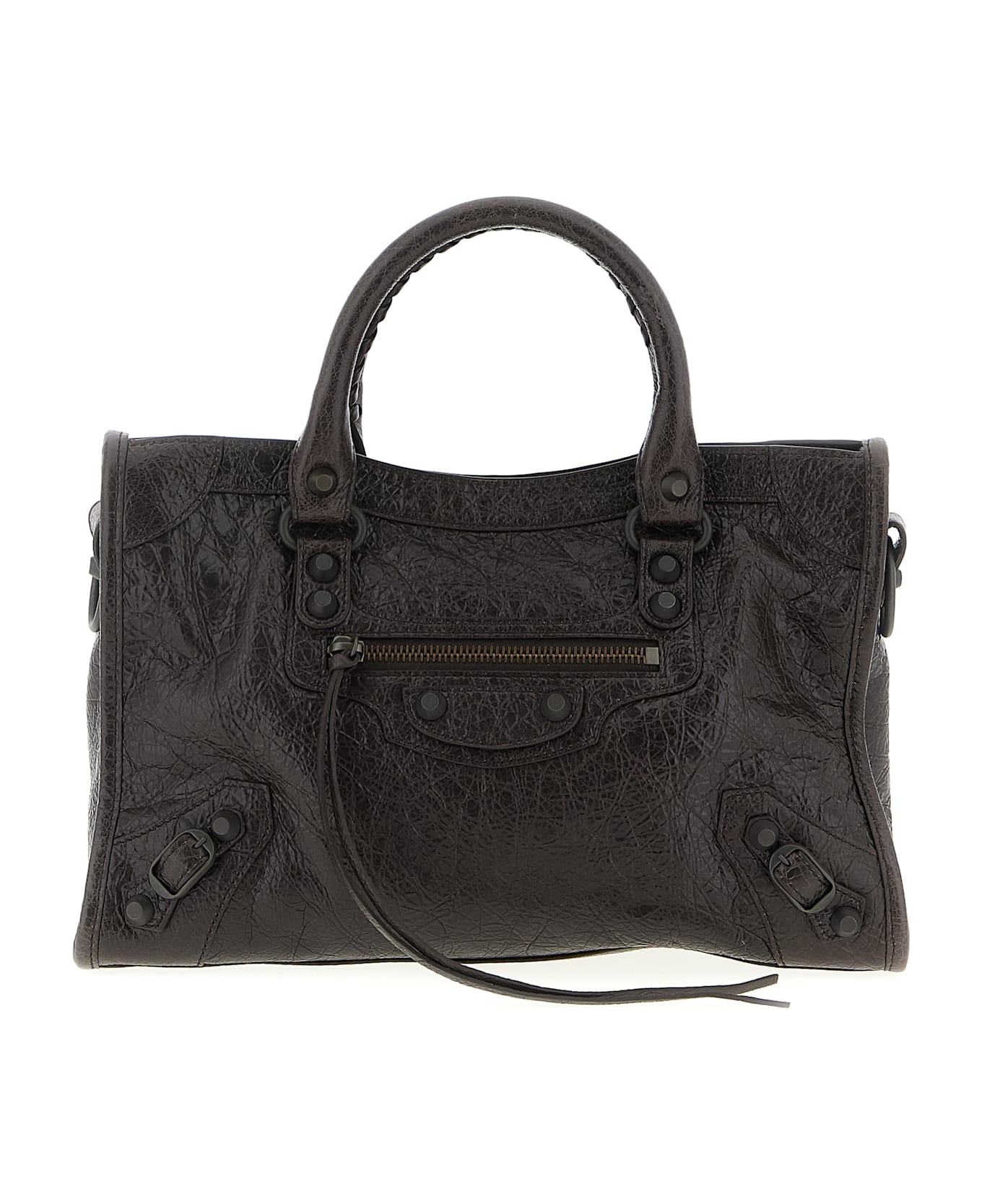 Arena Storico 'Le City Bag S' lambskin handbag with double fixed handle, top zip closure, brass finish studs, front zip pocket, adjustable and removable shoulder strap.