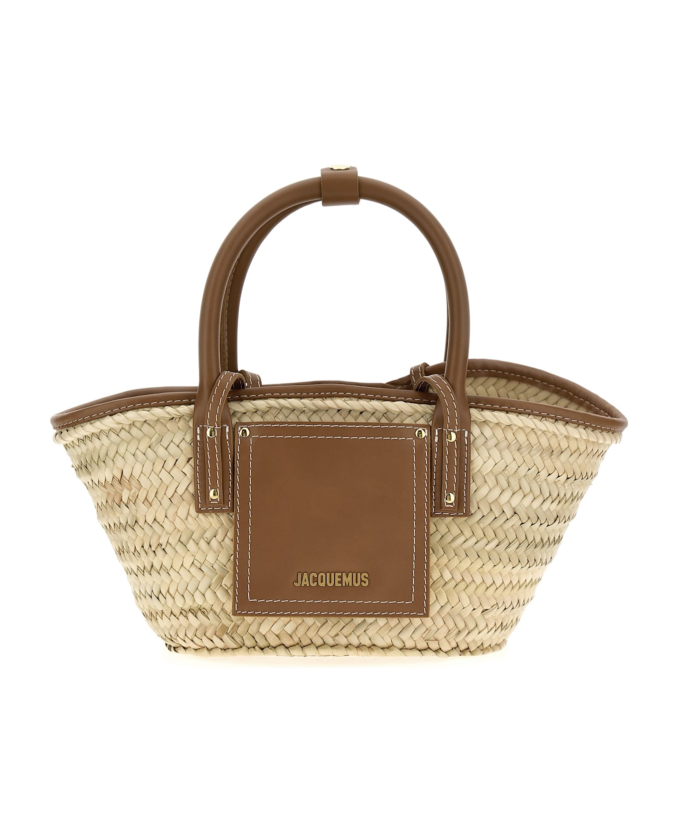 'Le Petit Panier Soli' straw shopping bag with leather trim, double leather handle, inner snap hook closure, front leather pocket with metal lettering logo, with longer handles to carry on the shoulder. Handcrafted product, any imperfections are to be considered characteristics of uniqueness.