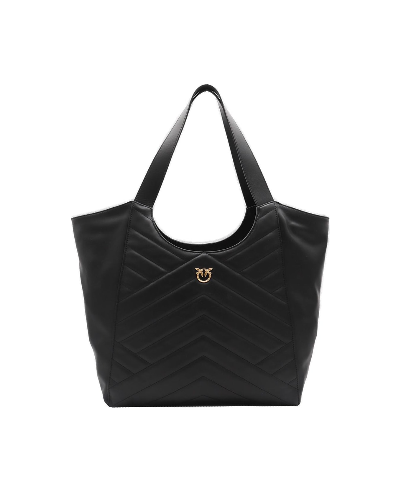 Logo Plaque Chevron Quilted Tote Bag Pinko