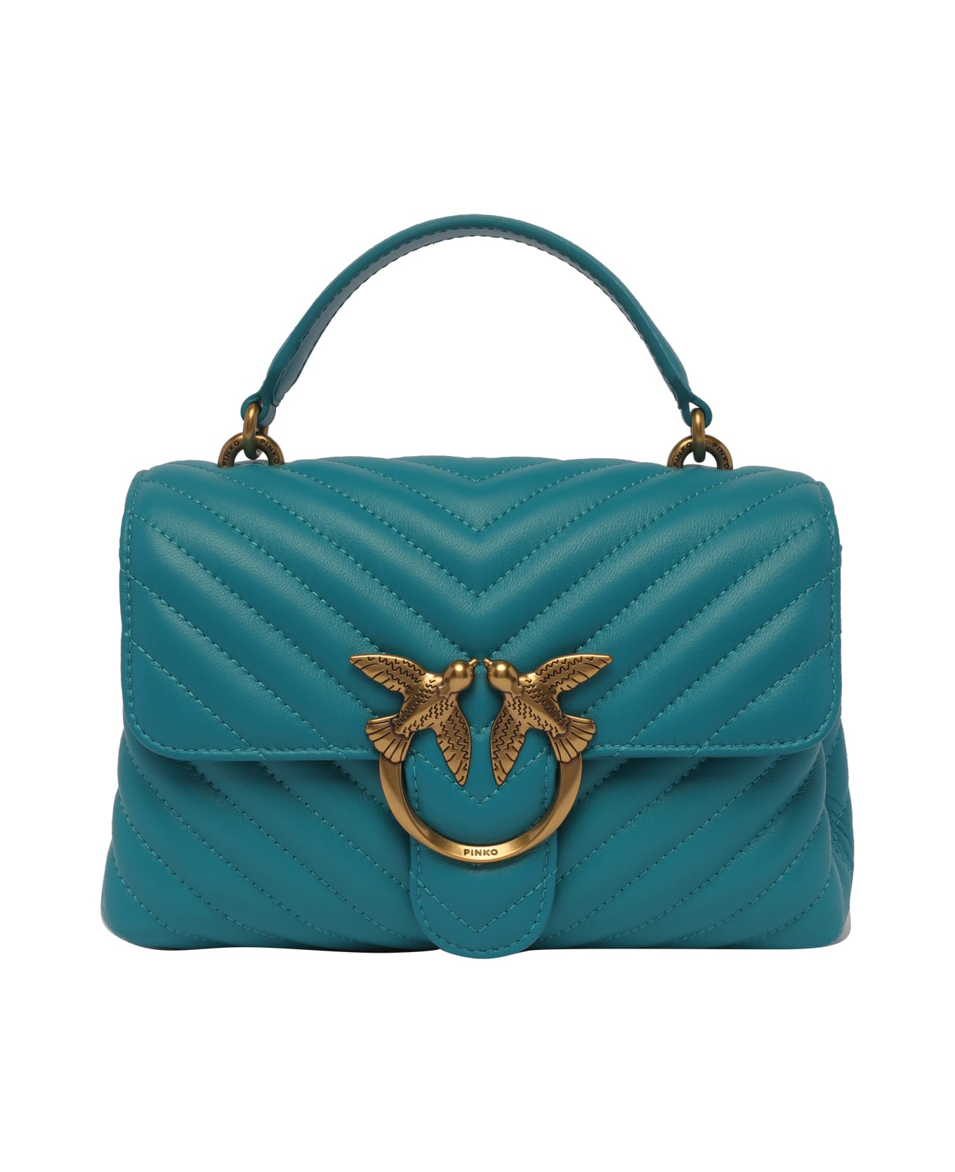Turchese-antique gold Love Lady Puff Mini Handbag from Pinko Pinko turquoise Love Lady Puff mini handbag with magnetic closure and 2 compartments (one with magnetic closure), inner zip pocket and one open pocket, one handle, adjustable and removable shoulder strap
