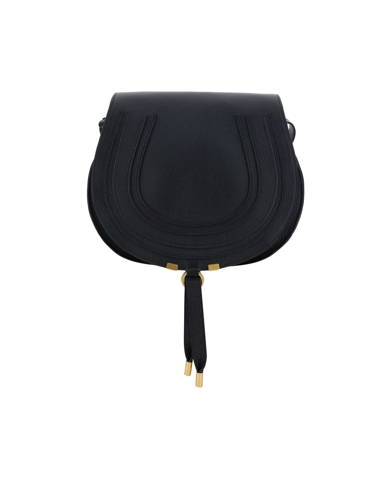 Calfskin marcie shoulder bag by chloé, iconic brand monogram press-stamped on front, adjustable flat shoulder strap, front flap closure with magnetic button, decorative leather tassel on front, slit pocket on front, interior compartment with pocket.