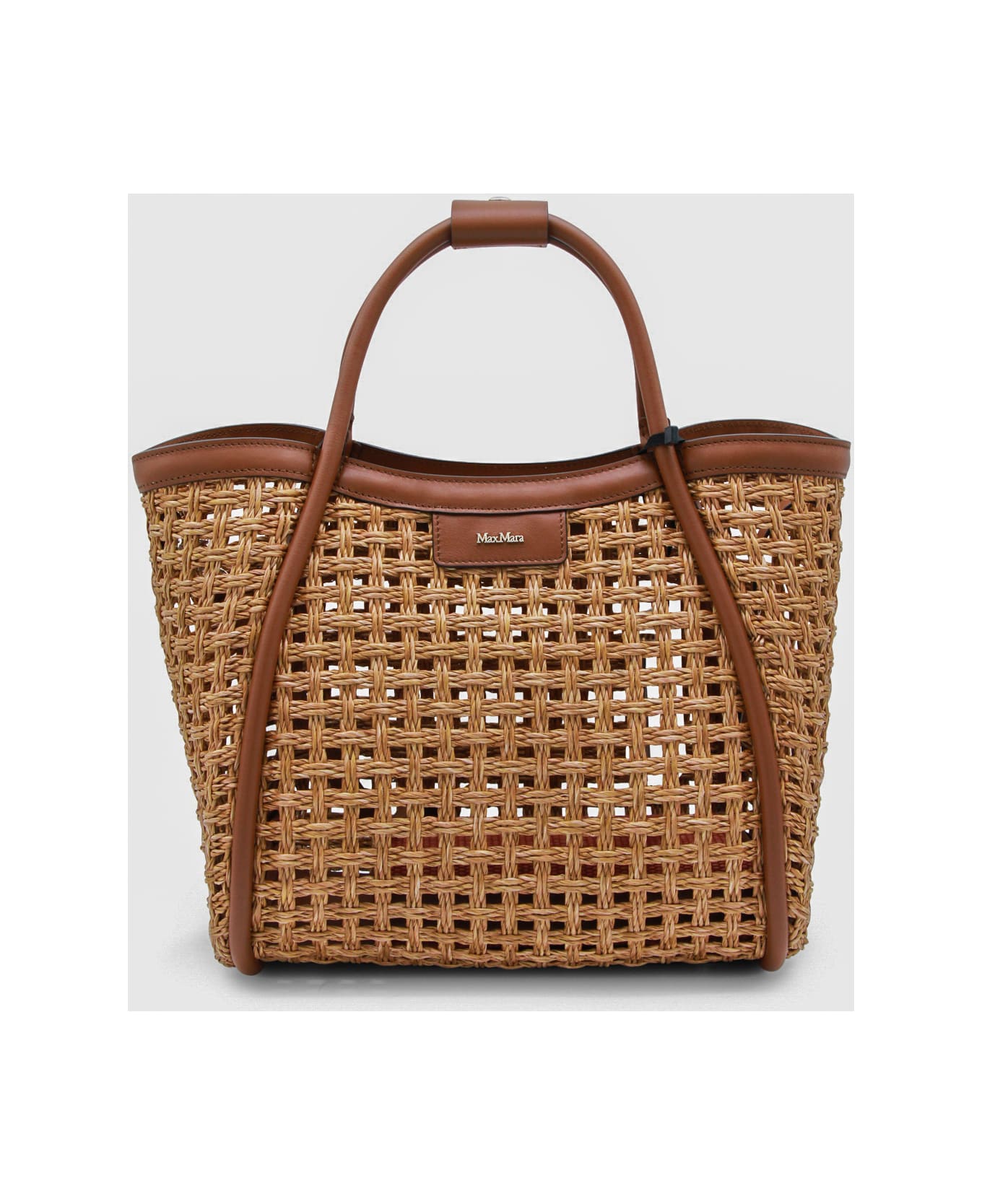Natural satchel from Max Mara featuring top handle, frontal logo patch, trasparence, raffia and leather details. Composition: _, 100% Polyamide
