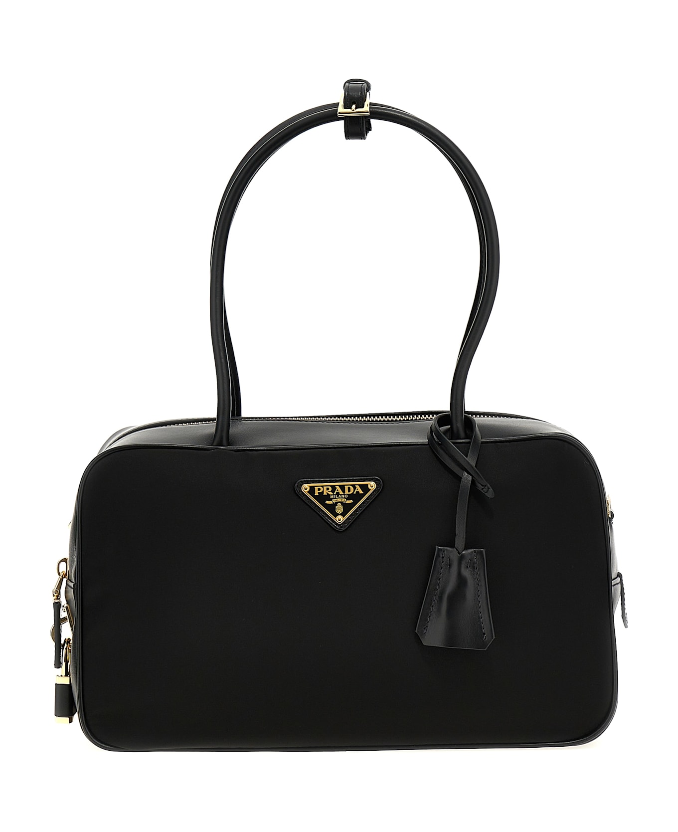 Re-Nylon and smooth leather handbag, padlock detail, double handle, front metal logo, zip closure. SUSTAINABLE: This product is made with Re-Nylon, a regenerated yarn made from recycled and purified plastic collected in oceans, fishery nets and textile fibers. Composition: