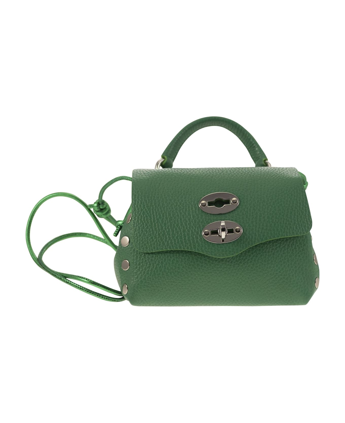 Your wardrobe should not be without this Postina® bag in grained leather, with a double clasp. Made of soft calfskin leather and specially treated to make it particularly resistant to wear, dirt, scratches and rubbing, as well as water-repellent, it is the ideal ally for your everyday tasks. Thanks to the thin, metallic leather shoulder strap, you can choose to wear it by hand, on the shoulder or over the shoulder. - Size: SBABY - Metallic shoulder strap DESIGNER ID: 068450 0720000 Z0492-SBABY