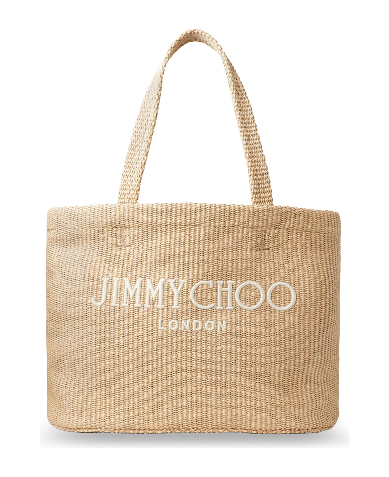 Double raffia handle Front lettering logo Unlined Made in Italy Rafia W: 40 cm, H: 30 cm, D: 18 cm SKU: BEACHTOTEEWMJYNNATURALLATTE