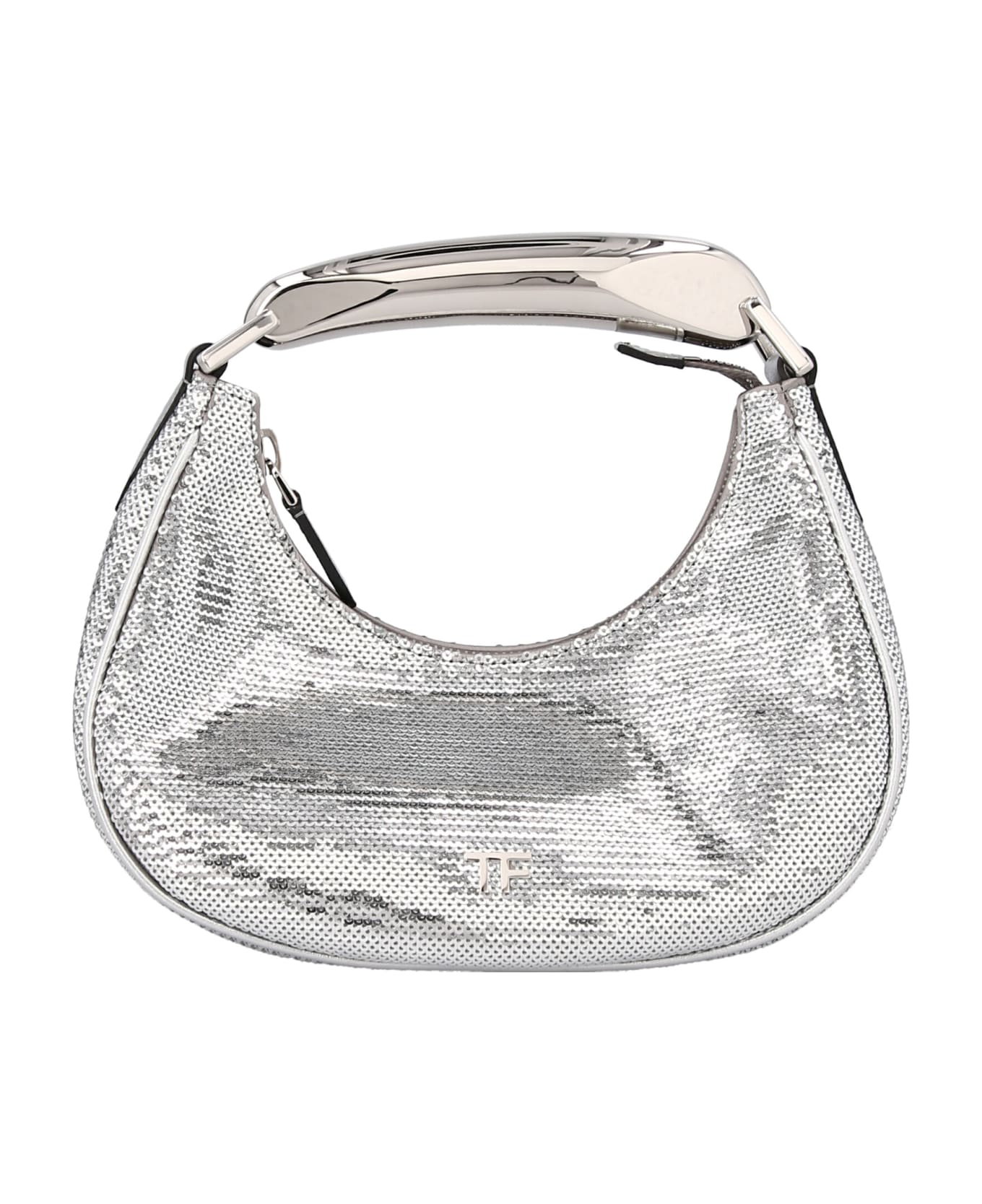 Handbag with sequin appliqué, metal top handle, chain and leather removable shoulder strap, zip closure and a front logo.