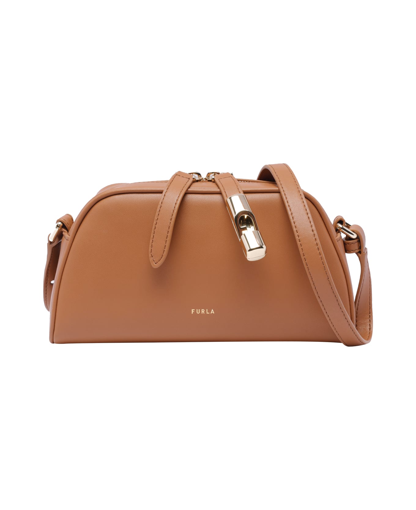 Furla brandy Small Goccia crossbody bag, zip closure, adaptable strap, leather model