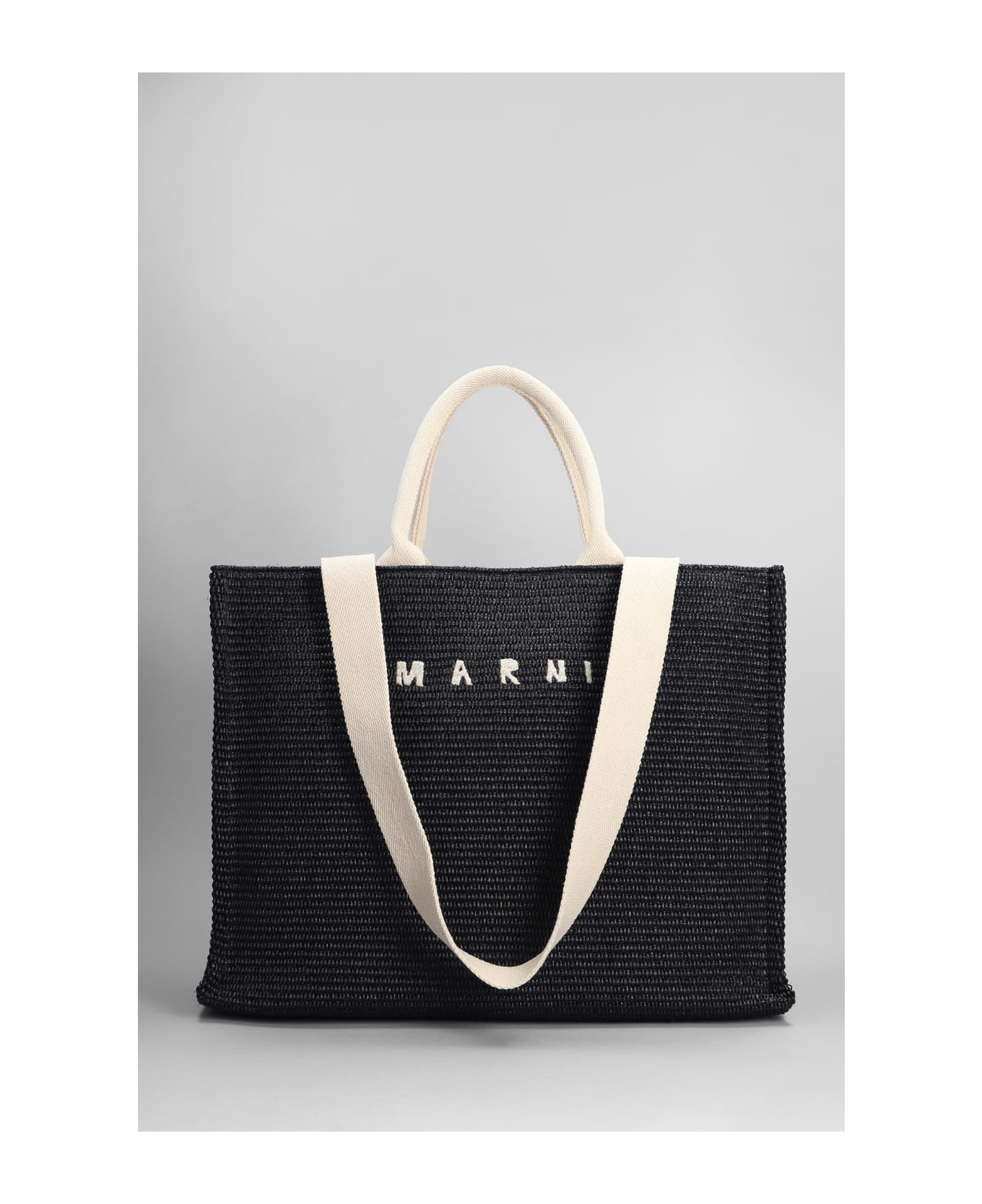 Tote in black Silver, double handle, logo print chain, zip inside, rafia fabric, Made in Italy, Height 360 mm, Width 460 mm