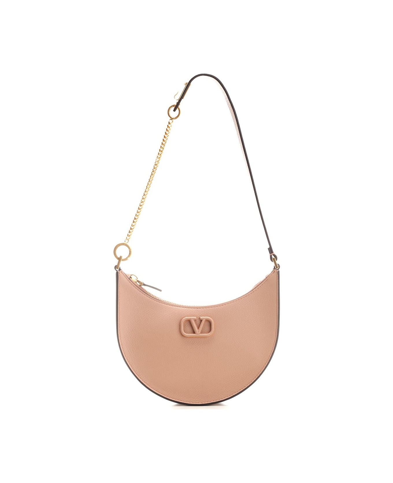 "V Logo" mini hobo bag from Valentino Garavani in pink leather with leather covered logo, zip closure, flat open pocket, leather and chain shoulder strap. Composition: 100% leather
