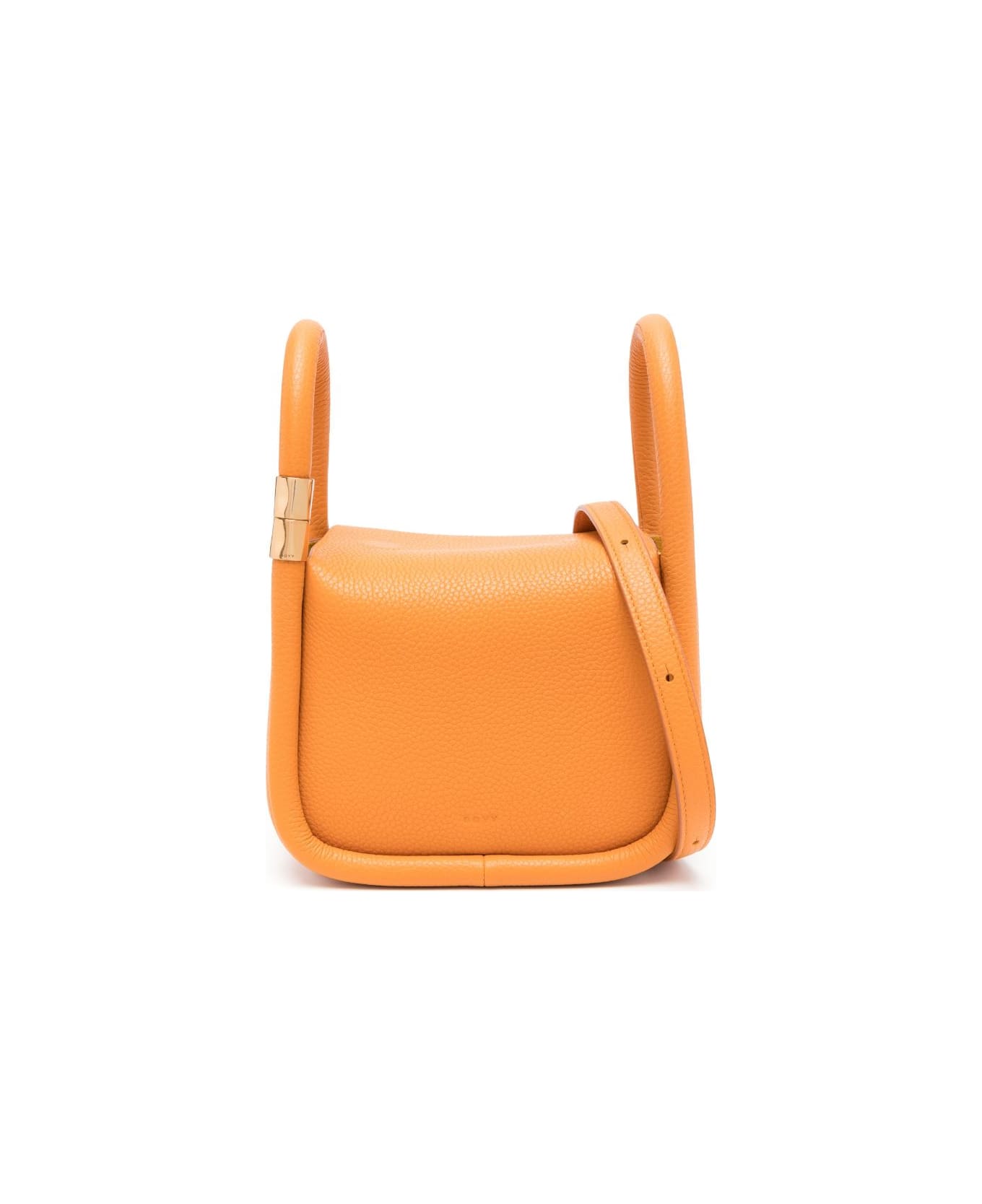 Wonton 20 leather shoulder bag from BOYY featuring apricot, calf leather, metal, pebbled texture, suede lining, bronze-tone hardware, two top handles, foldover top with magnetic fastening, adjustable detachable shoulder strap, main compartment, internal slip pocket and metal feet.