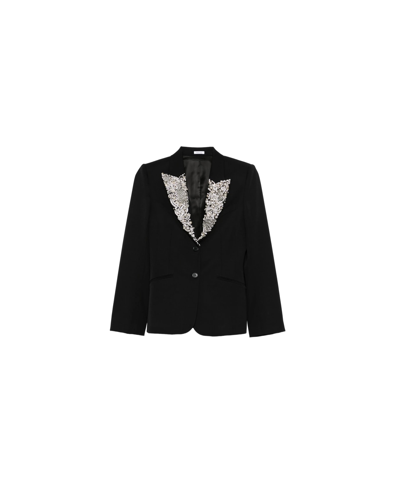 black embellished lapel single-breasted button fastening peak lapels long sleeves