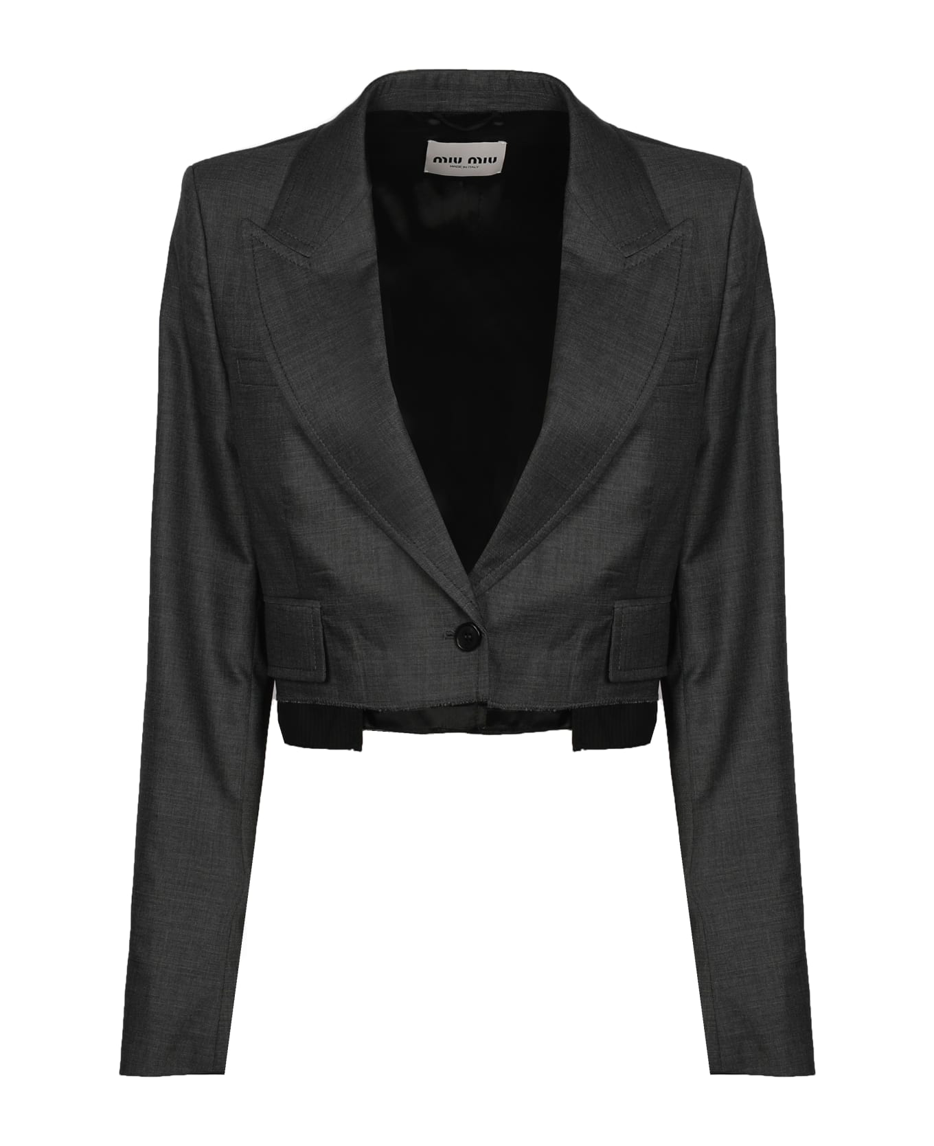 Ardesia Single-breasted Jacket In Grisaille from Miu Miu -Jacket with mini fit -Lined -Peak lapel -Front closure with button -Sleeves with buttons -Flap pockets -Embroidered logo -Colour: Gray -100% Virgin wool
