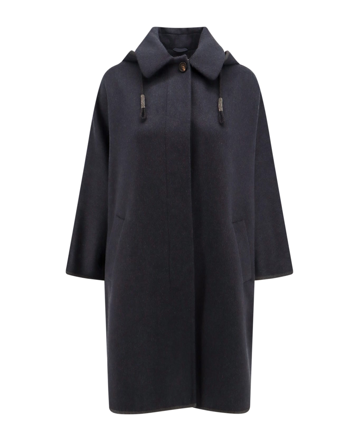 - Hidden Closure With Buttons - Removable Hood With Drawstring And Monili Detail - Front Pockets - Made In Italy - 100% Cashmere