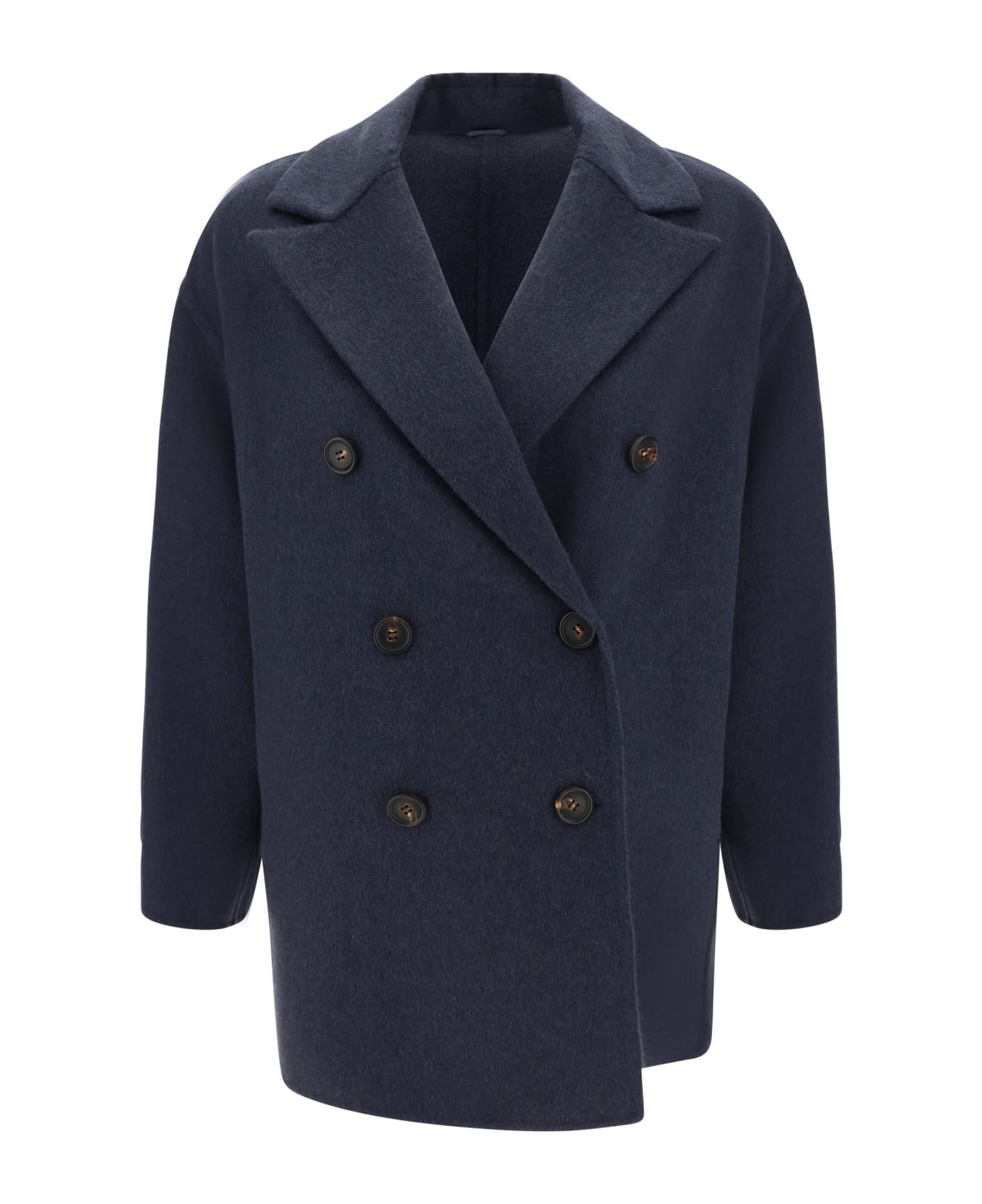 Wool coat by brunello cucinelli, a double-breasted design with contrasting front button fastening, classic lapels, two side welt pockets, jewel-embellished patch appliqué on left sleeve, monochrome design, regular fit. Composition: 100% % Wool