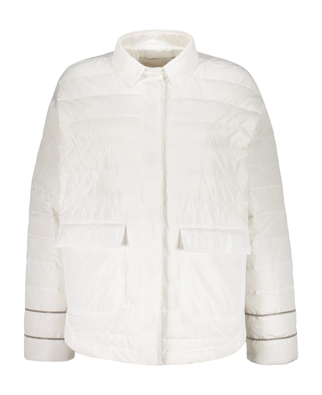Classic collar front hidden fastening two front flap pockets micro decorative beads padding: 90% goose down; 10% goose feather 100% polyester, 100% polyamide Composition: 100% % Polyester, 100% % Polyamide