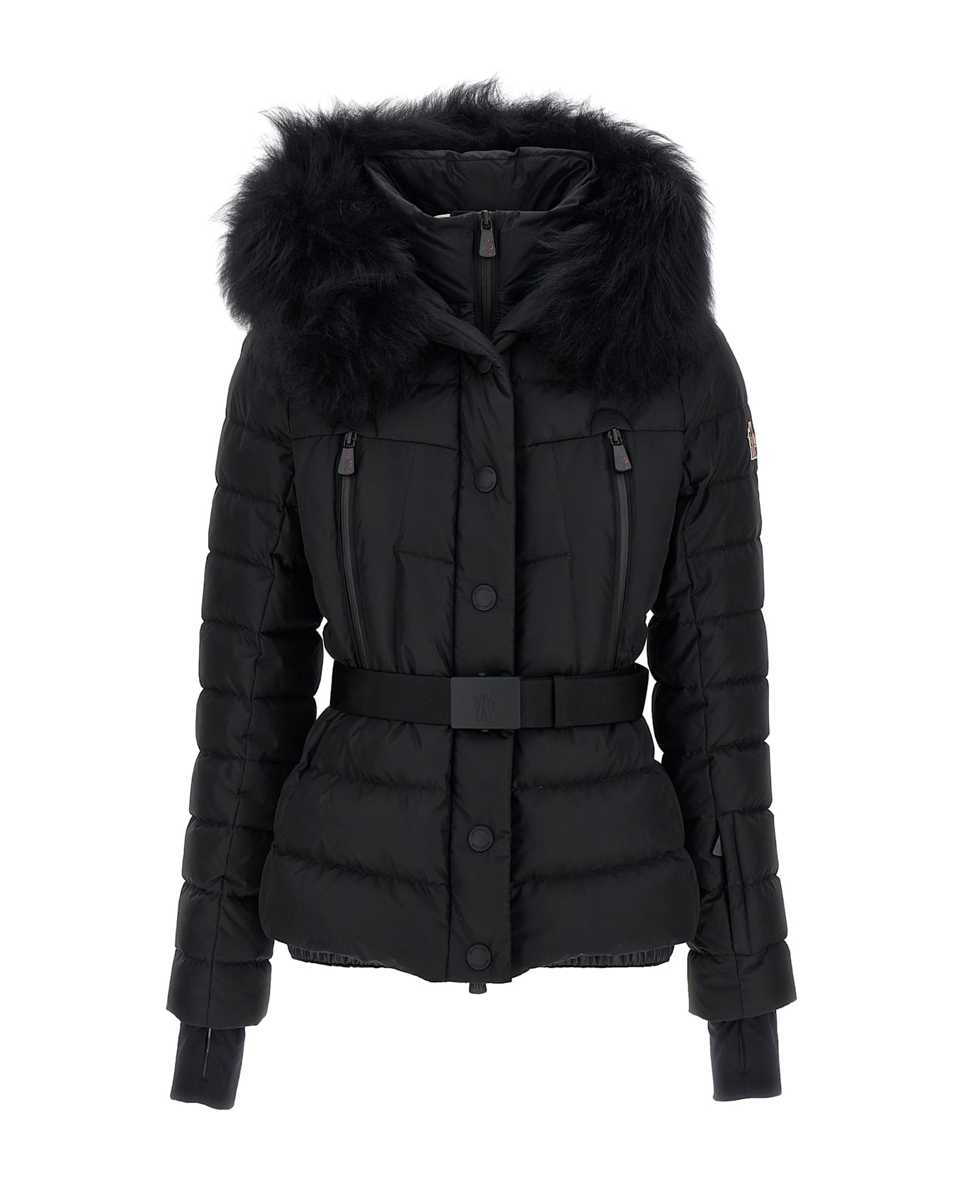 'Beverley' down jacket in technical nylon with feather padding, hood with removable sheepskin fur, high neck, logo patch on the sleeve, zip closure, pockets, adjustable and removable belt, long sleeves with windproof cuffs, windproof inner gaiter.