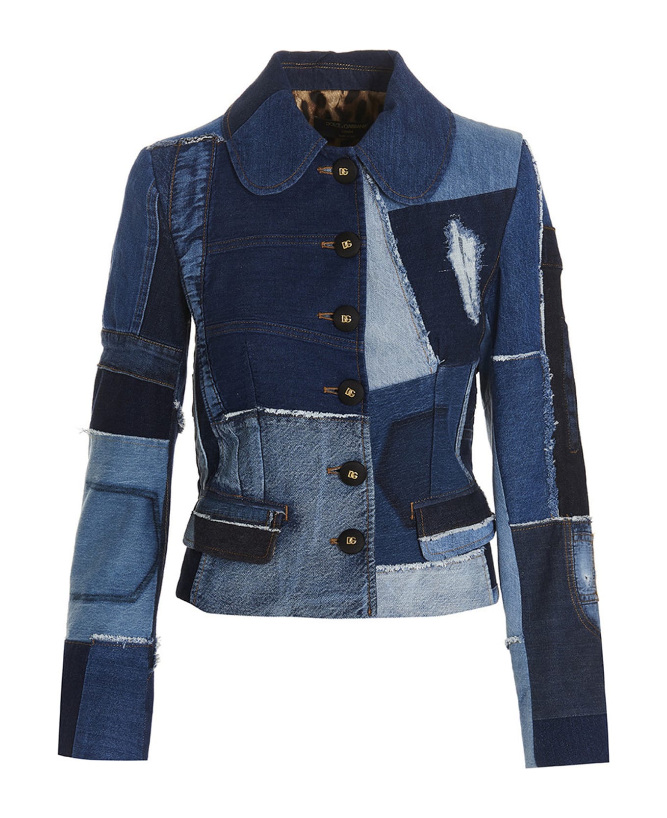 Patchwork denim jacket featuring ripped detail and logo buttons. Each jacket could be different. Composition: 100% cotton
