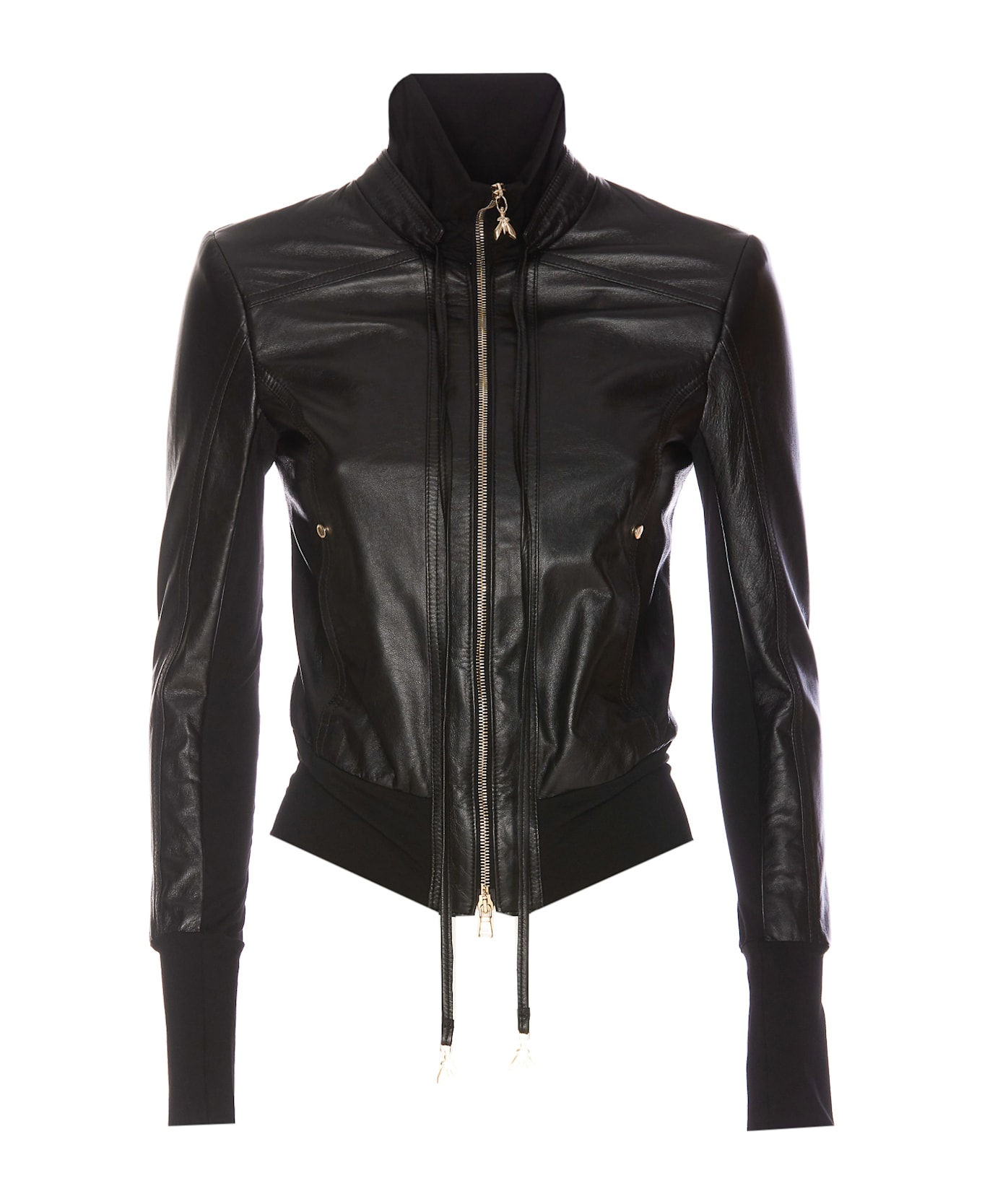 Patrizia Pepe black jacket with frontal zip closure, high neck with coulisse, long sleeves, lateral pockets, long sleeves