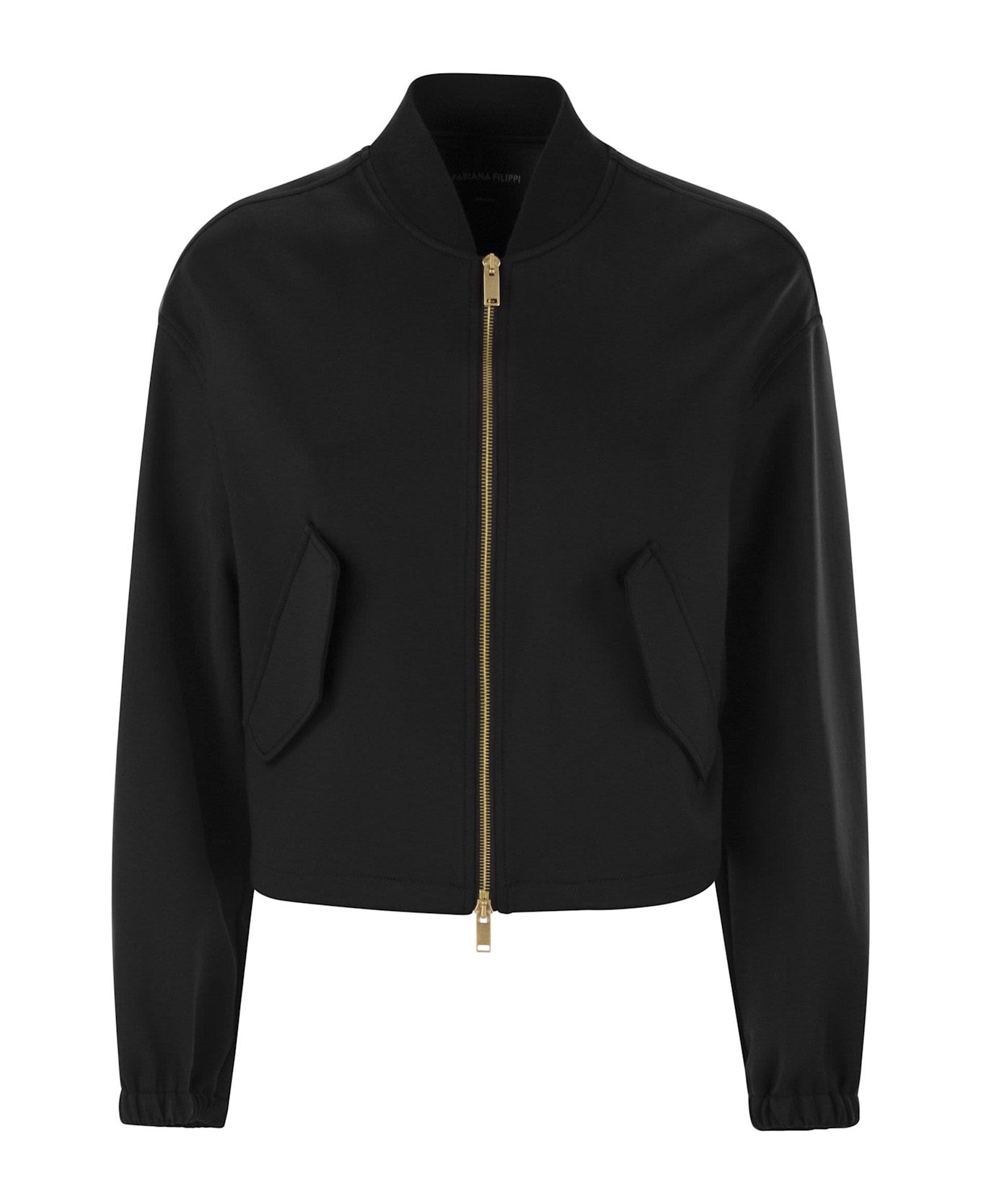 Innovative fabrics and unique details meet in contemporary and versatile silhouettes. In this unlined cropped jacket, the essential design is enhanced by scuba jersey and embellished by the knitted collar. Produced entirely in Italy through sustainable processes. - Jersey scuba -Cropped - Made in Italy DESIGNER ID: GCD265F090L224 825 Composition: Fabric: 84% polyamide 16% elastane Knitted collar: 53% wool 47% cotton