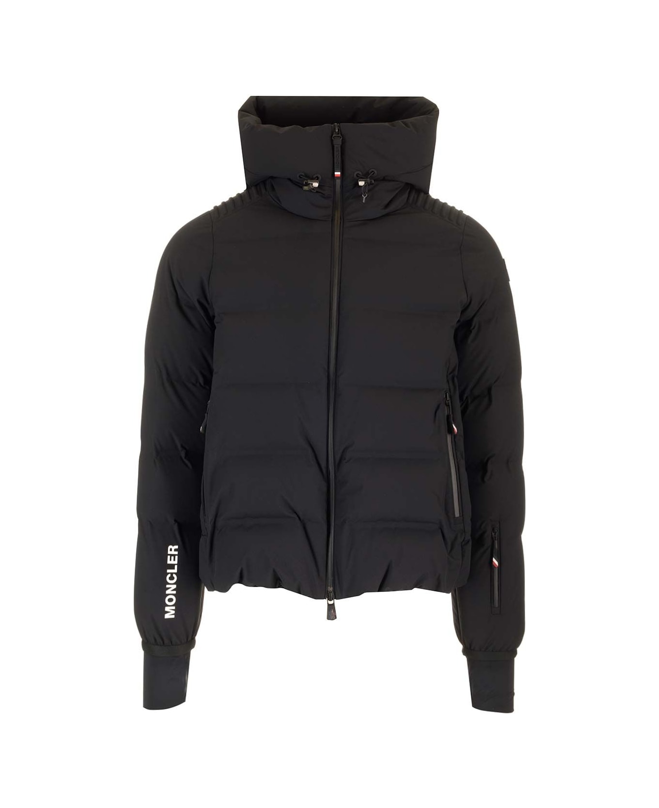 'Suisse' puffer jacket from Moncler Grenoble, made of stretch technical nylon and with down padding. Removable hood, water-resistant heat-sealed zips, ski pass pocket, internal windproof gaiter, stretch jersey cuffs.