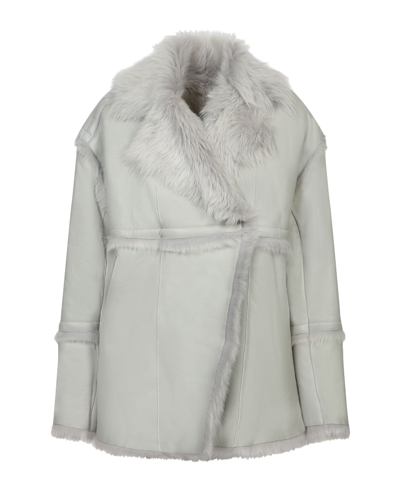 An exclusive creation by Iro, the grey Vernon sheepskin jacket features sophisticated design with fur details that enhance the silhouette. Perfect for a trendy and refined winter look.