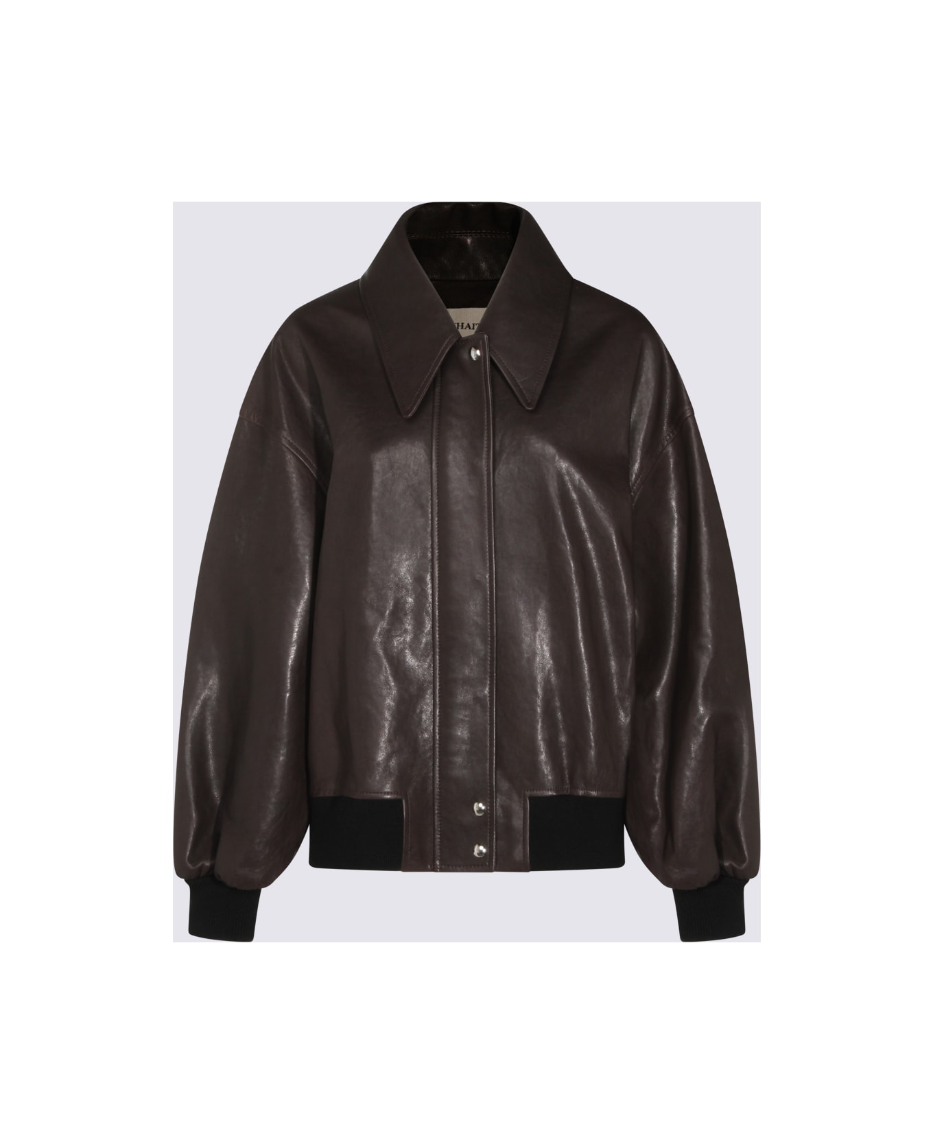 Dark brown leather jacket from Khaite featuring shirt collar, button fastening, long sleeves and soft vestibility. Composition: _, 100% Le