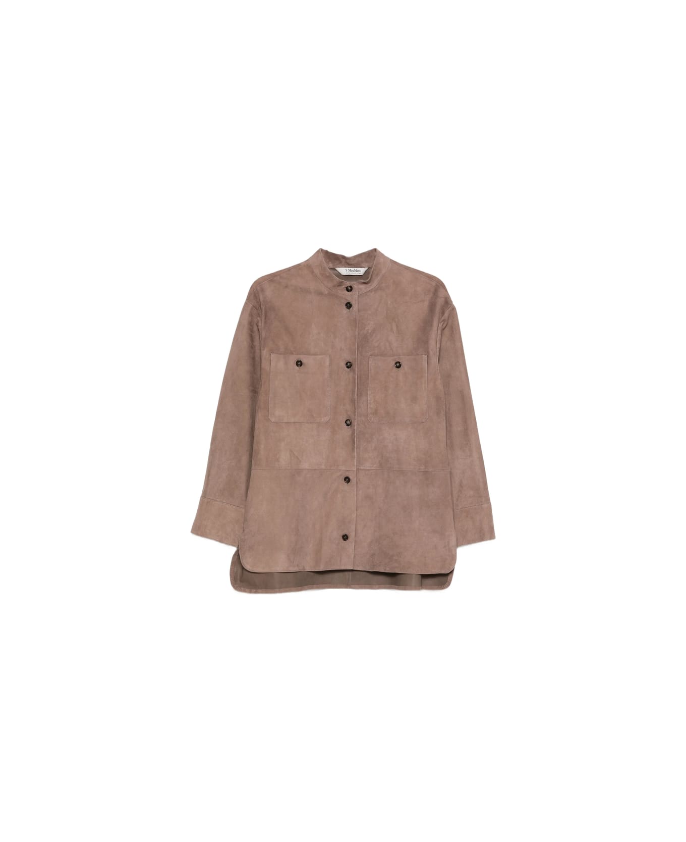 light brown front button fastening two chest patch pockets band collar long sleeves panelled design