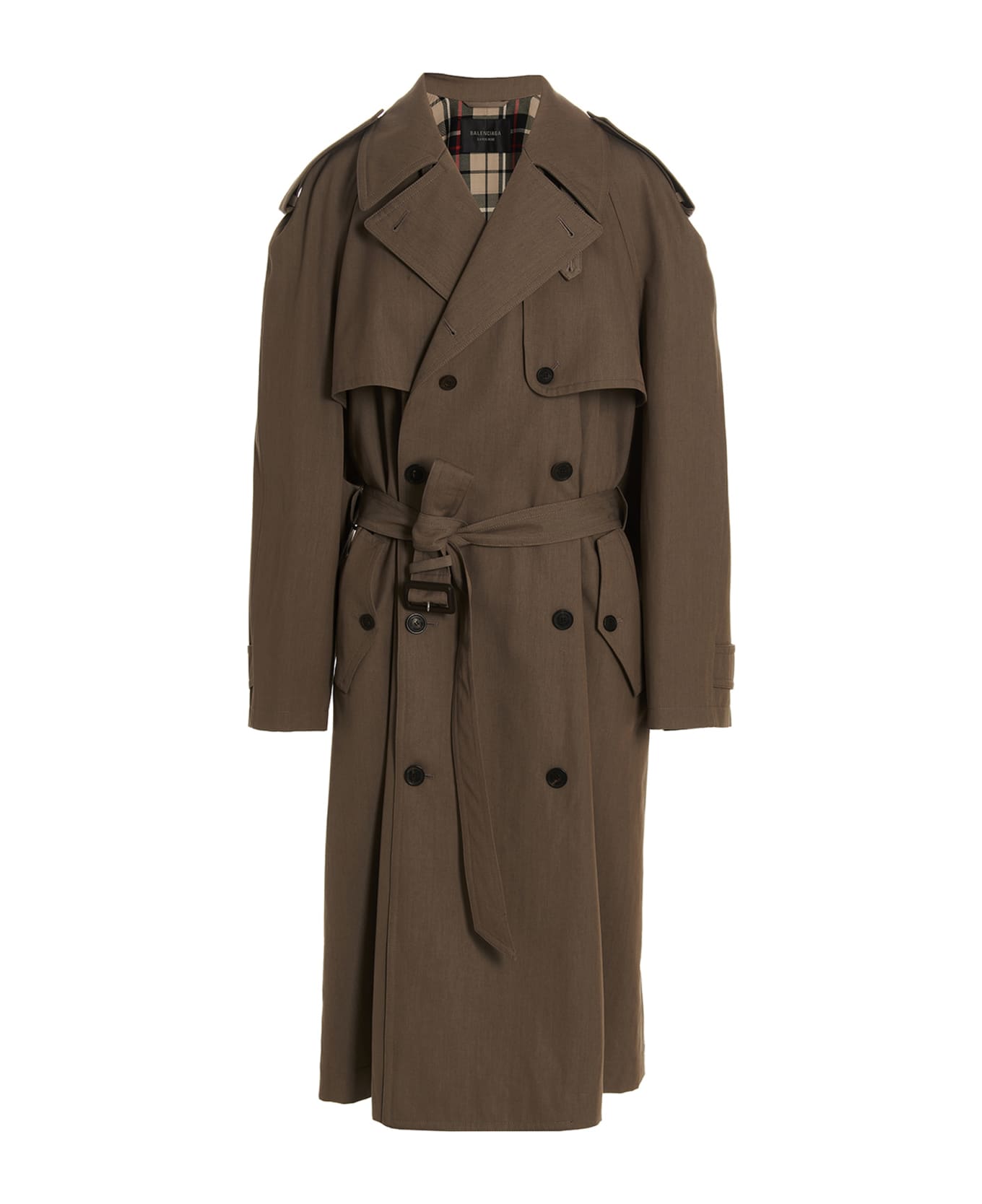 Oversize cotton and wool trench coat, featuring lapels, straps on the shoulders, raglan long sleeves, double breast style with 6 buttons, windproof flap on the front, pockets, adjustable cuffs and a belt at the waist. Composition: 55% wool 45% cotton