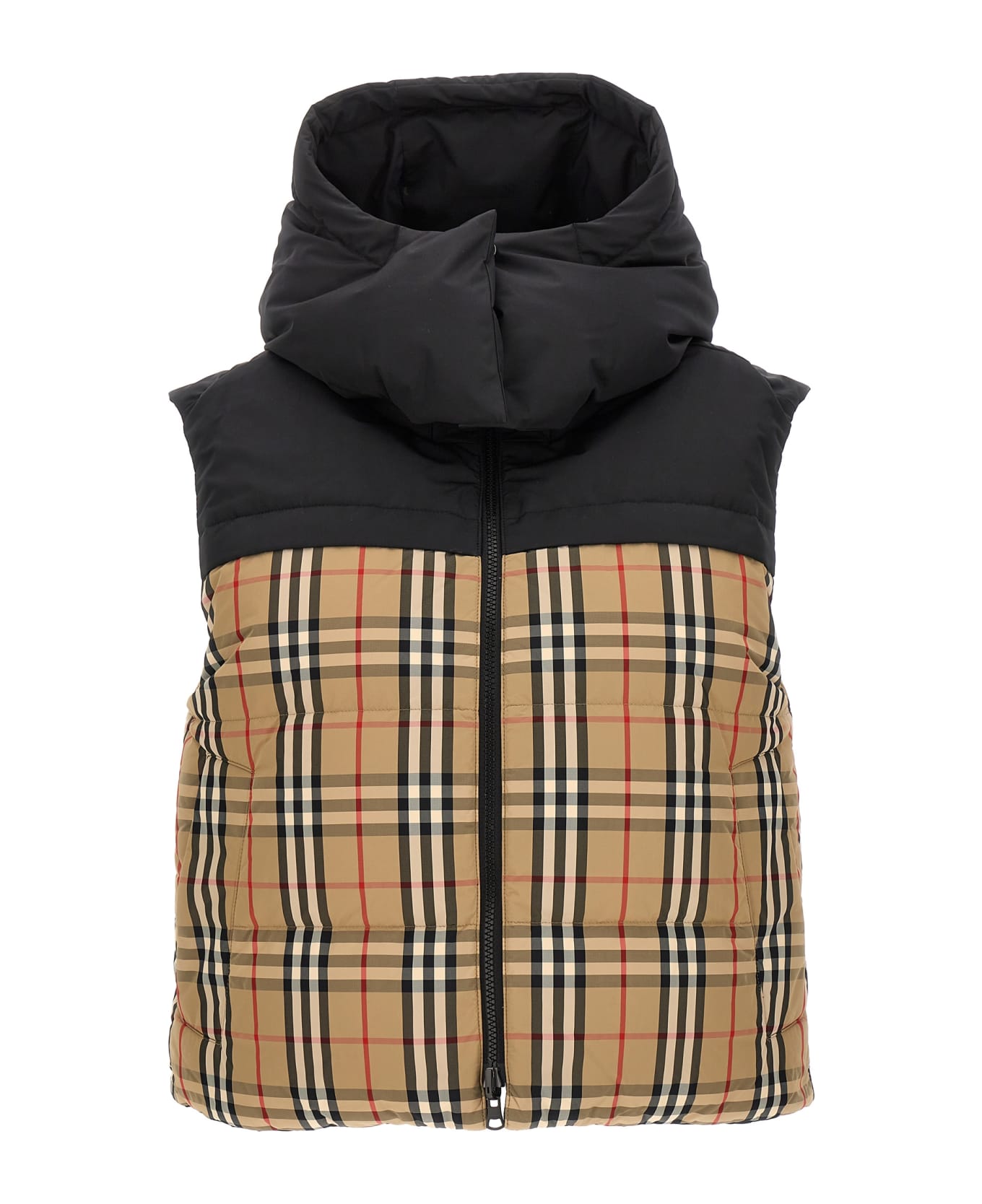 'Coles' reversible nylon vest with down padding with check print inserts, removable hood, pockets, zip closure, adjustable drawstring on the bottom of the garment. Composition: 100% nylon