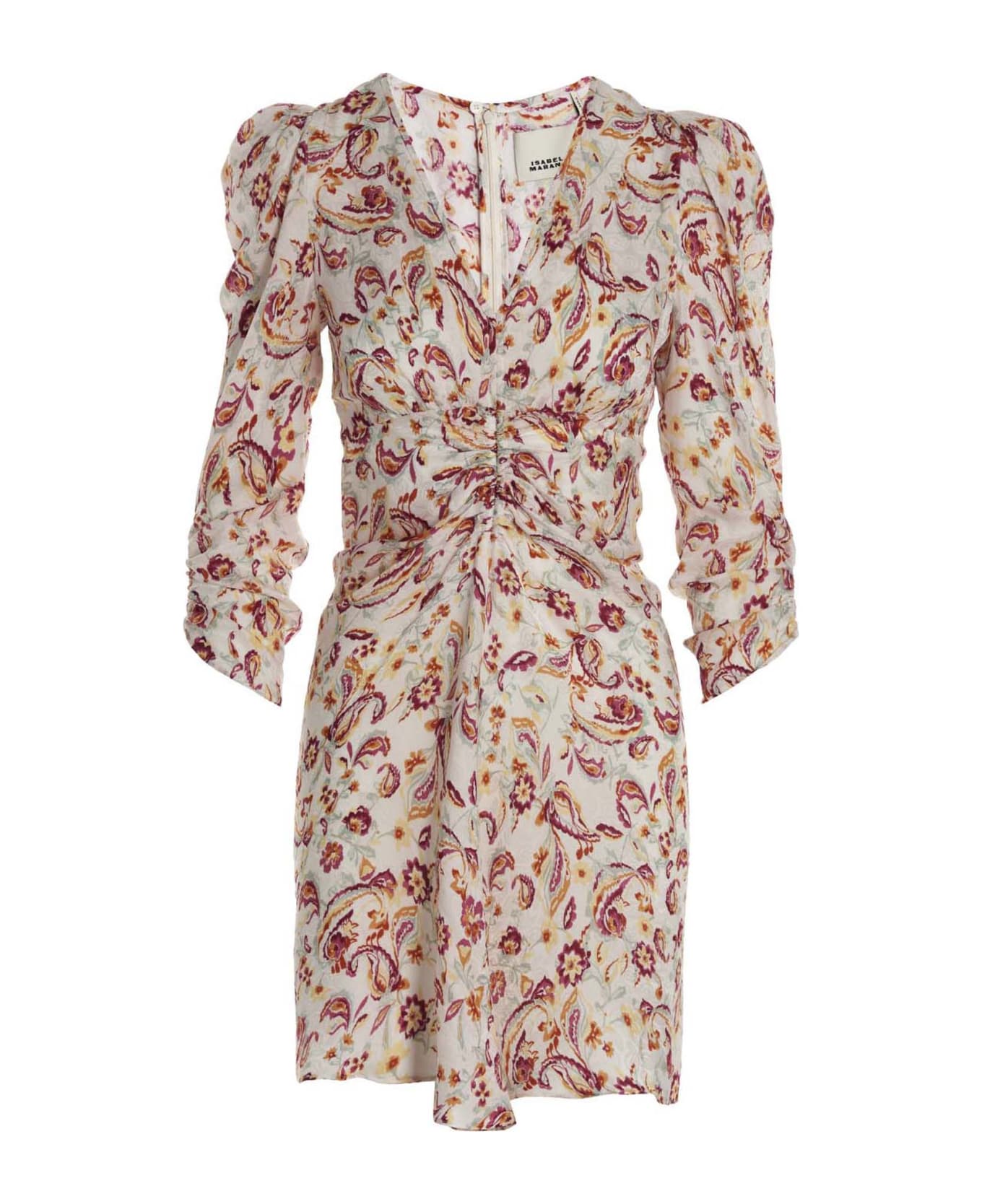 'Aliniza' viscose and silk mini dress with V-neck, puff sleeves, all-over floral print, back zip closure. sure. Composition: 65% viscose 35% silk