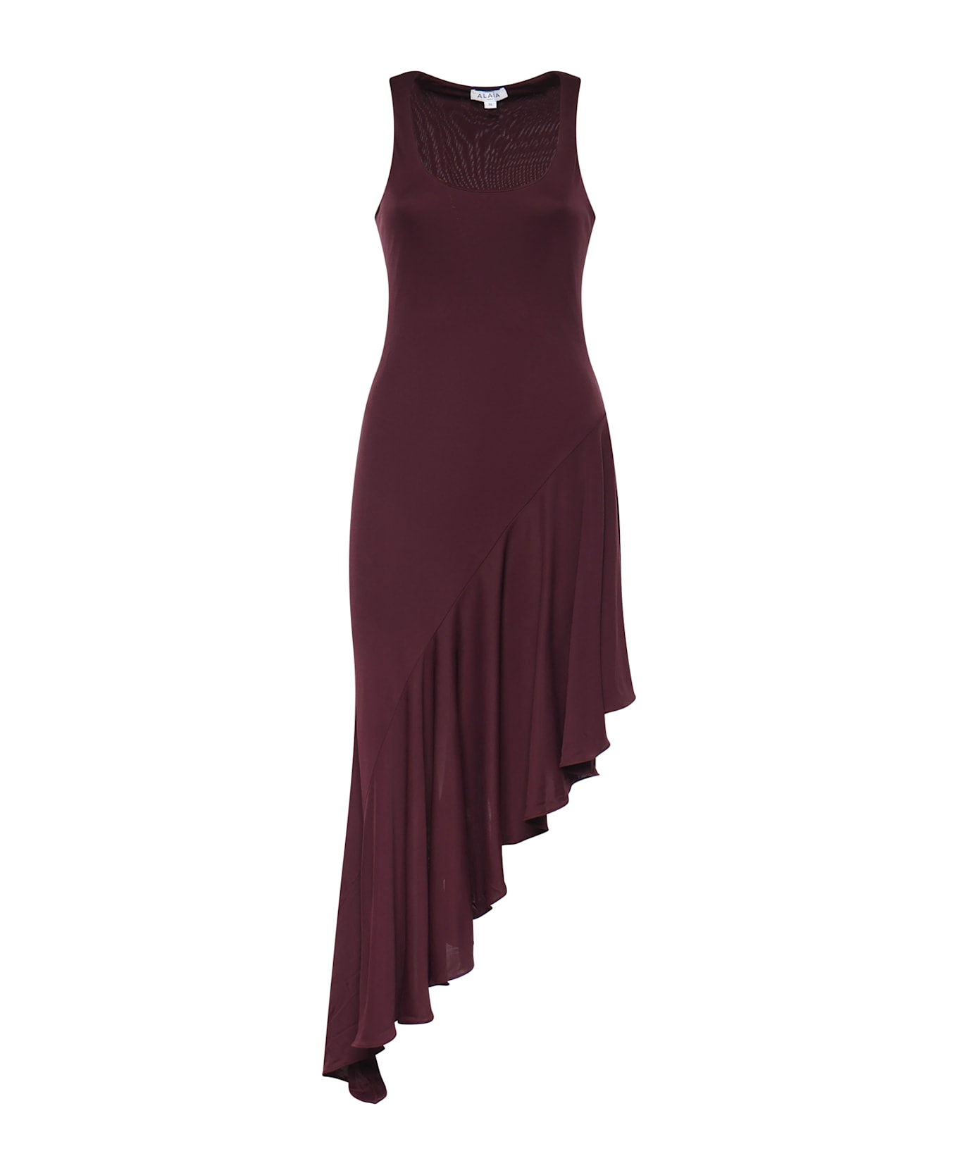- Crew neck - Sleeveless - Ruffled hem - Made in Italy - Size shown is 36 - Color: Bordeaux