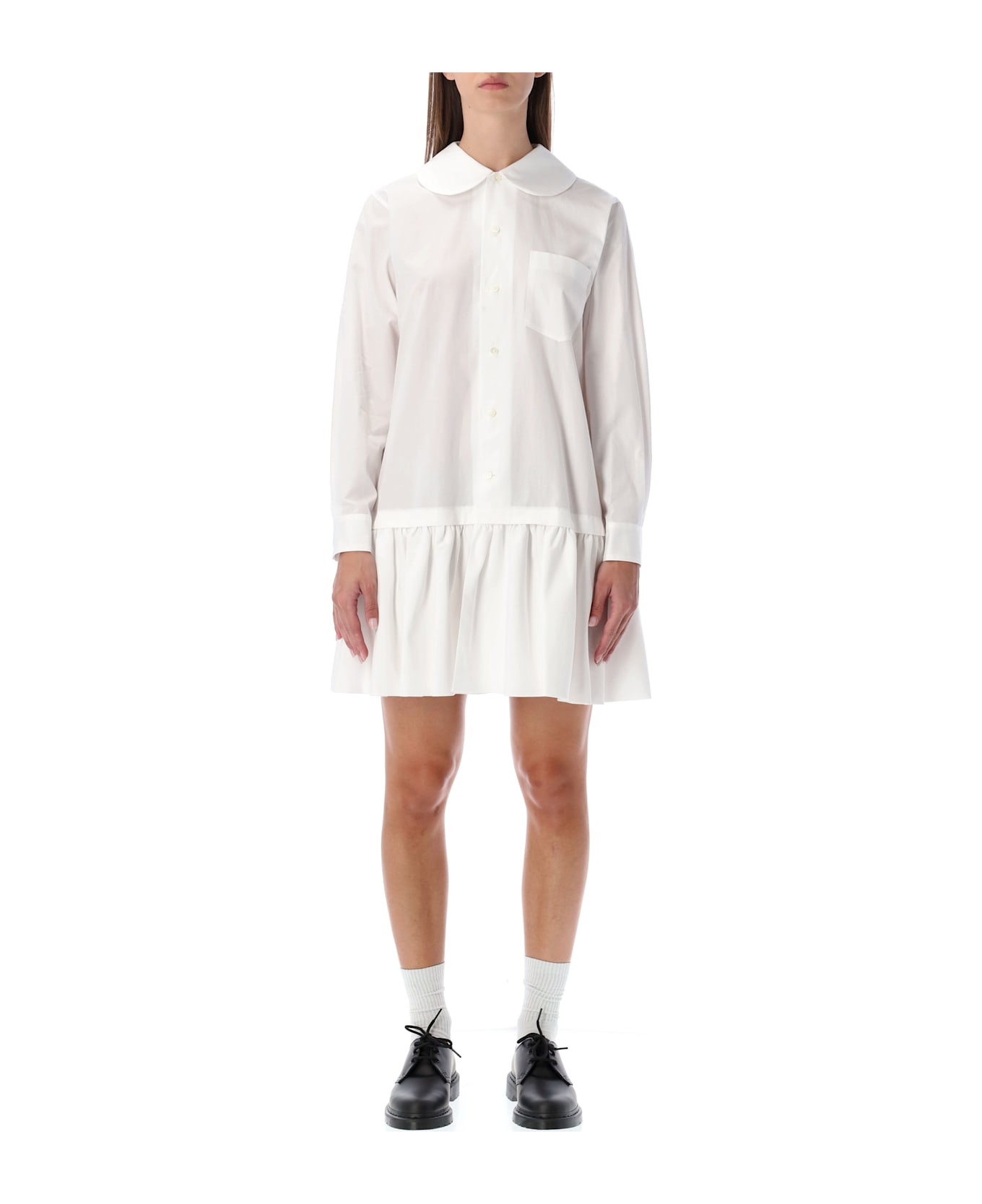 Comme Des Garçons Girl Introduces This Cotton Shirt Dress, A Playful Take On Classic Shirting. Crafted From 100% Cotton, It Features A Peter Pan Collar, Button Front And A Chest Pocket. The Relaxed Silhouette Is Elevated By A Drop-waist Seam With A Gathered Skirt, Adding Movement And Feminine Charm To The Design. A Versatile Piece That Reflects The Brand s Signature Balance Of Innocence And Sophistication. Peter Pan Collar Button Front Closure Chest Pocket Drop-waist Seam With Gathered Skirt Long Sleeves With Buttoned Cuffs Alessandra Is 1,75 M And Wears Size S