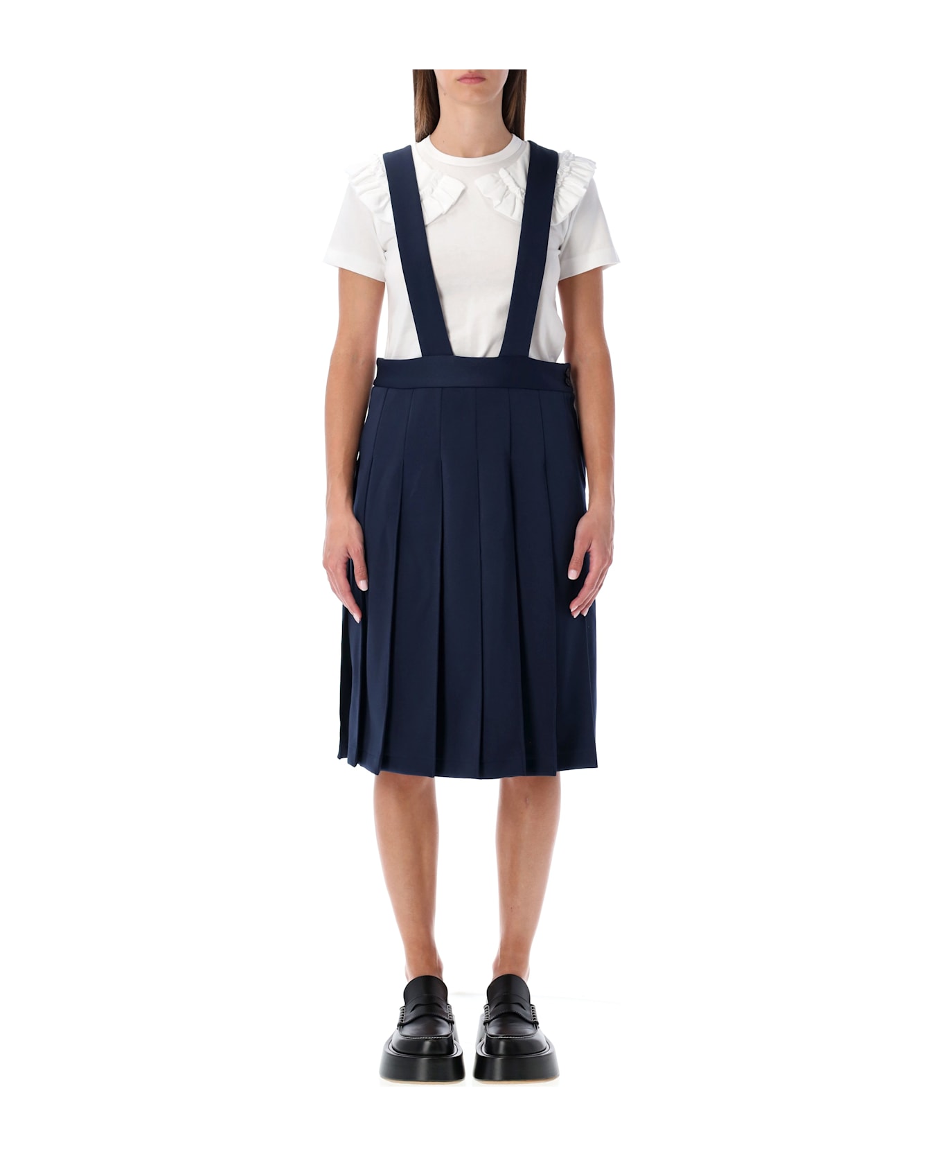 Comme Des Garçons Girl Navy Pleated Suspender Skirt