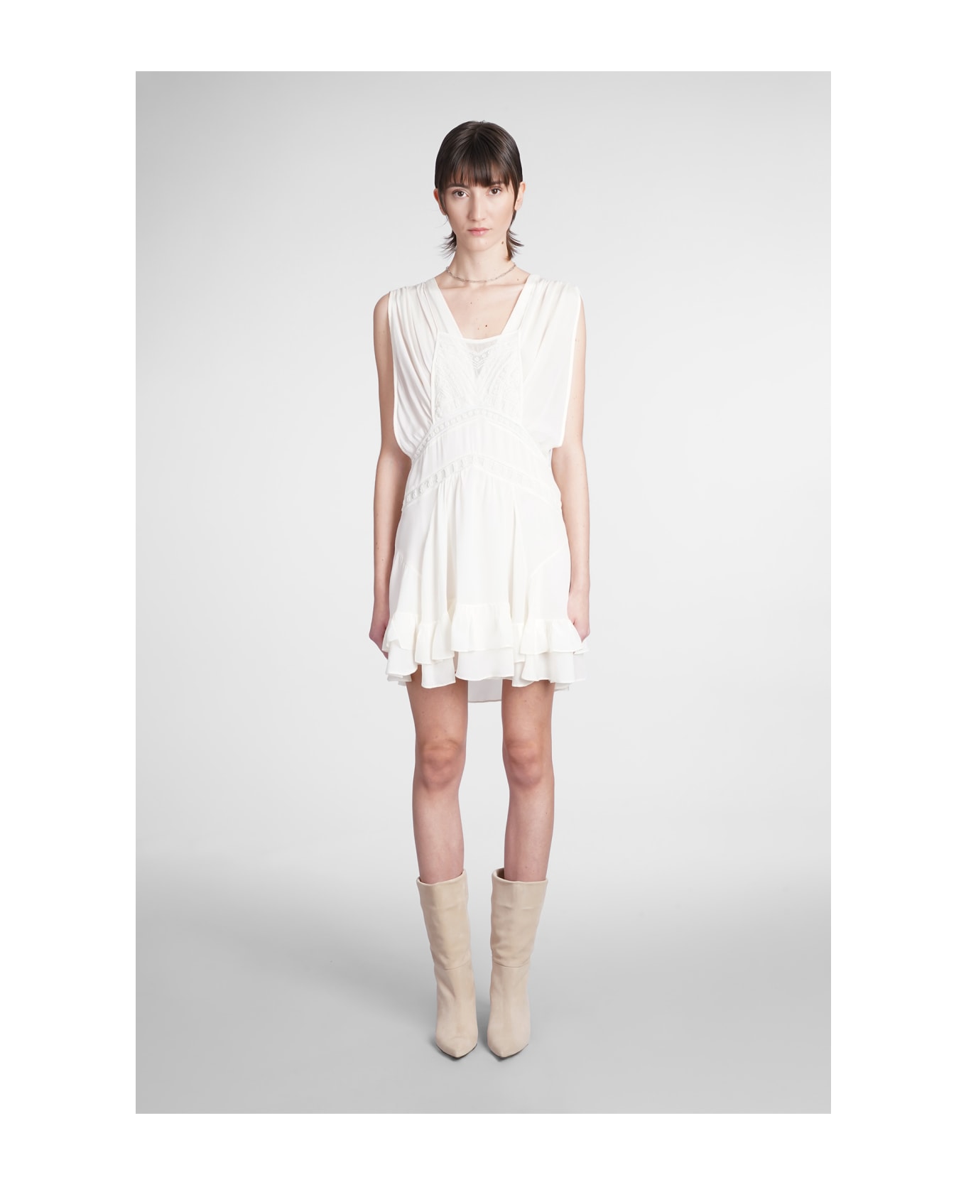 Conor Dress in beige silk, V neck, sleeveless, pearls detail, volantdetail, 100% silk, Made in India, Model is 180 cm and wears 36