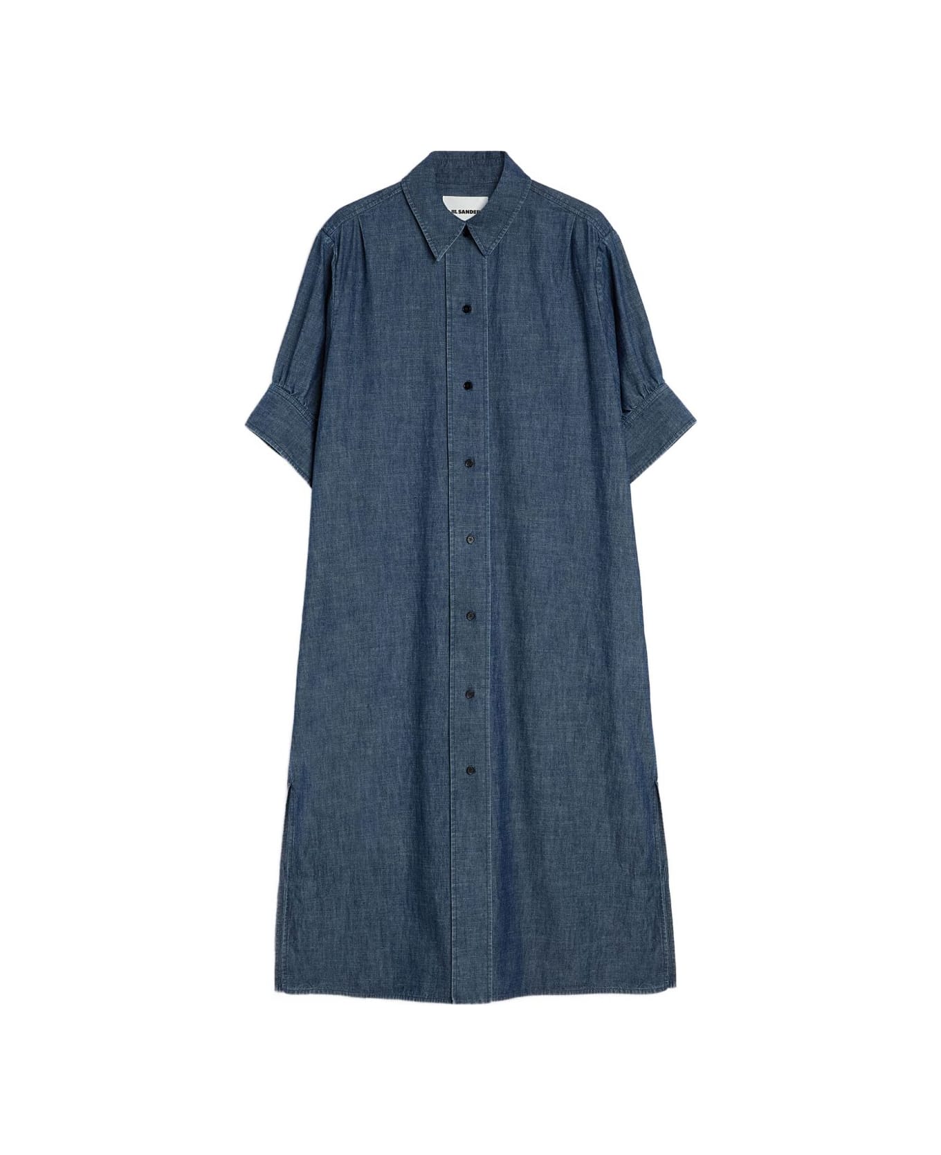 blue pointed collar button fastening side seam pockets side slits buttoned cuffs Composition: 100% Cotton
