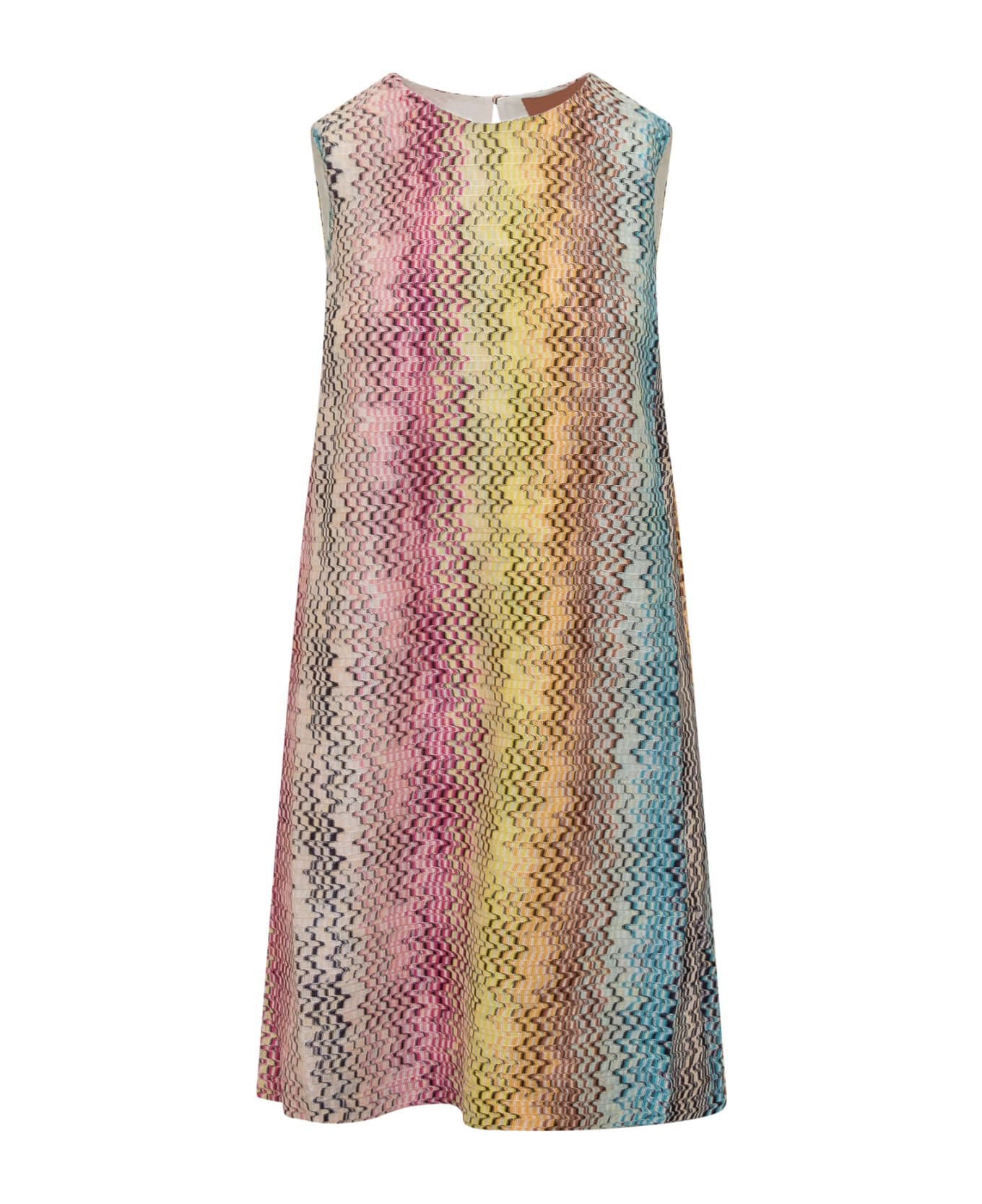 Midi sleeveless dress. Crew neck. Button closure on the back. All-over multicolored geometric pattern. Composition: Outside:, 100% Viscoselining:, 100% Polyester