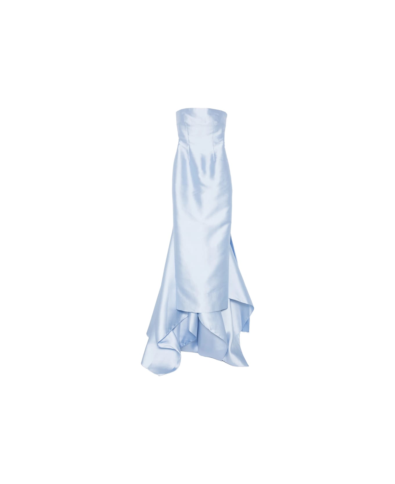 ice blue strapless ruffled hem concealed zip-fastening layered design