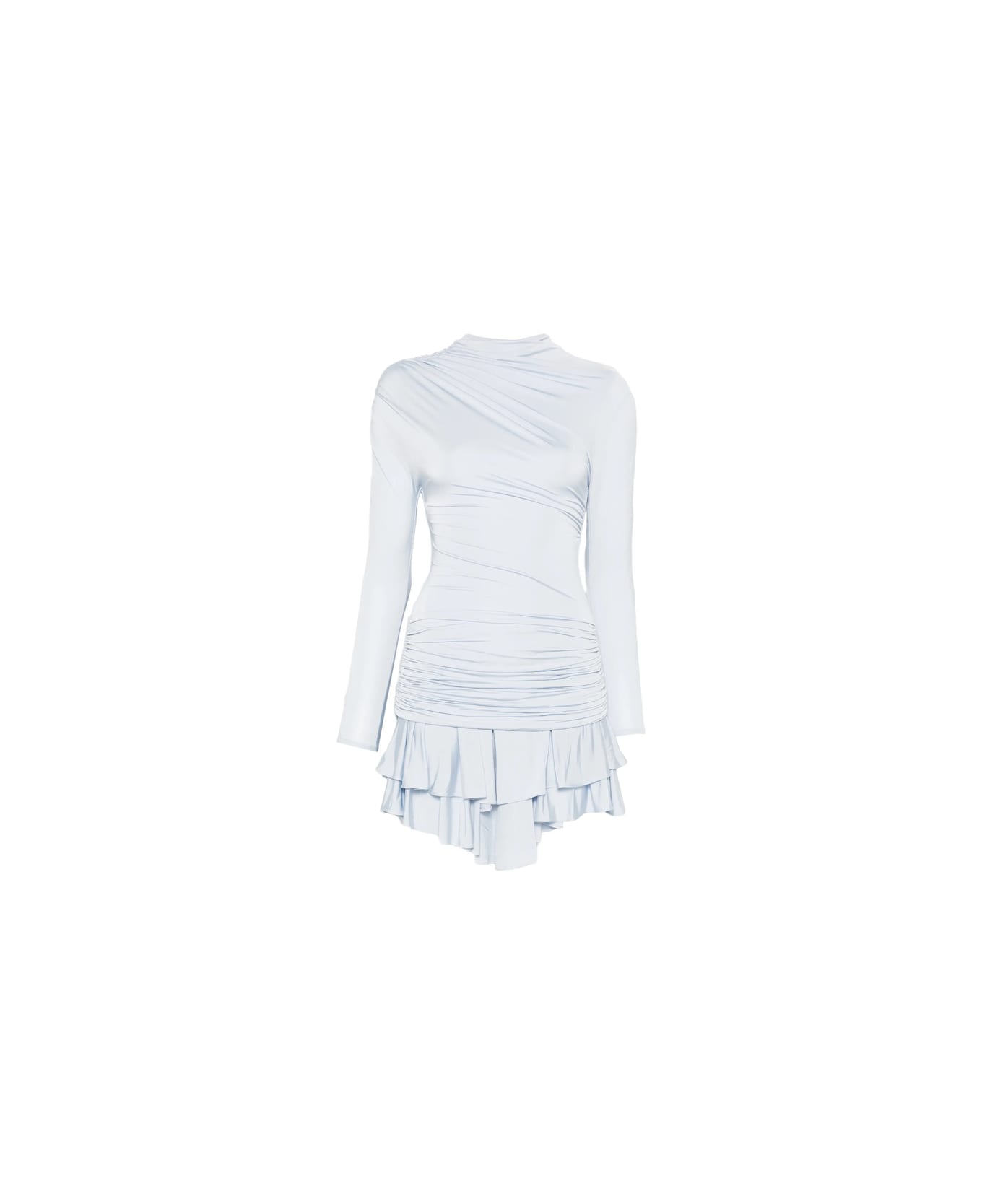 blue ruffled hem gathered detailing long sleeves short sleeves round neck