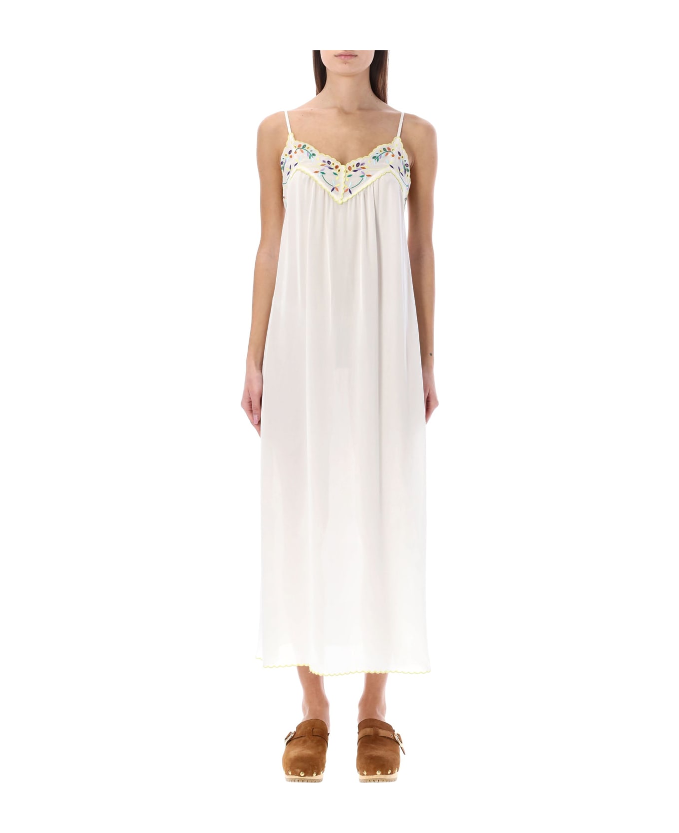 Viscose Embroidered Slip Dress By See By Chloé. Featuring: Slip-on Style Spaghetti Straps Embroidered Trim Embroidered Scalloped Hem Ankle-length Silhouette Model Is 1,72 M Tall And She's Wearing Size 36