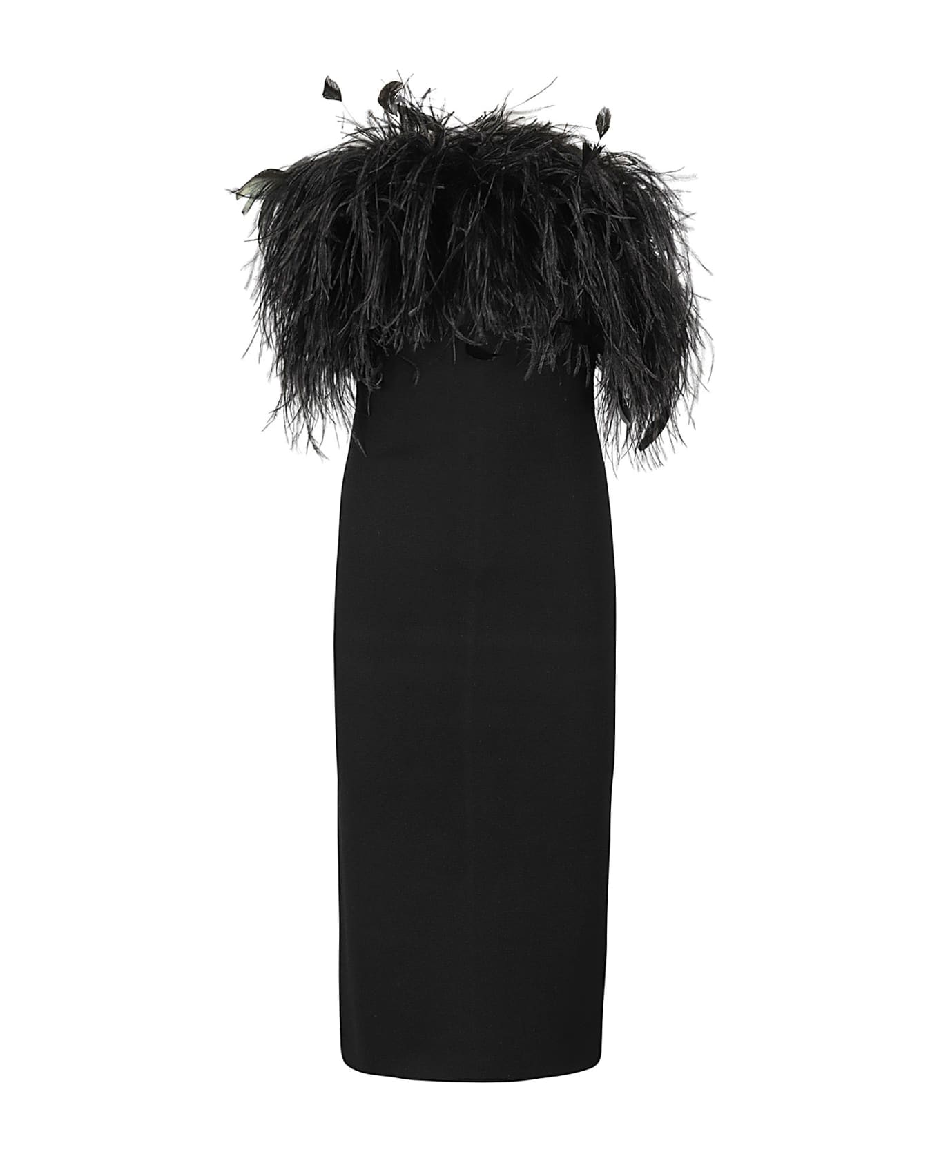 Eolo dress - Max Mara Elegant Studio - black color - stretch knit sheath model - sleeveless straight neckline -application of animal feathers on top - back zipper closure