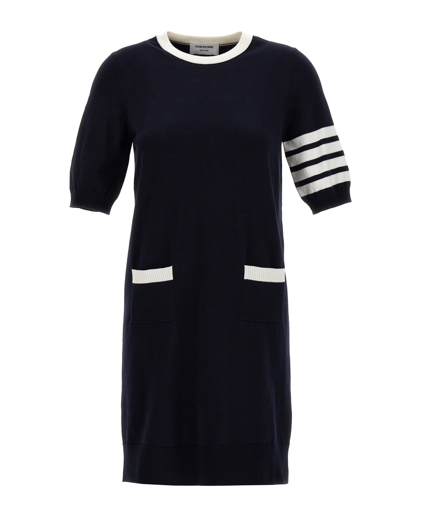 'Hector' cotton knit dress with crewneck, short sleeves, front pockets and a stripe detail on the sleeve. Composition: 100% cotton