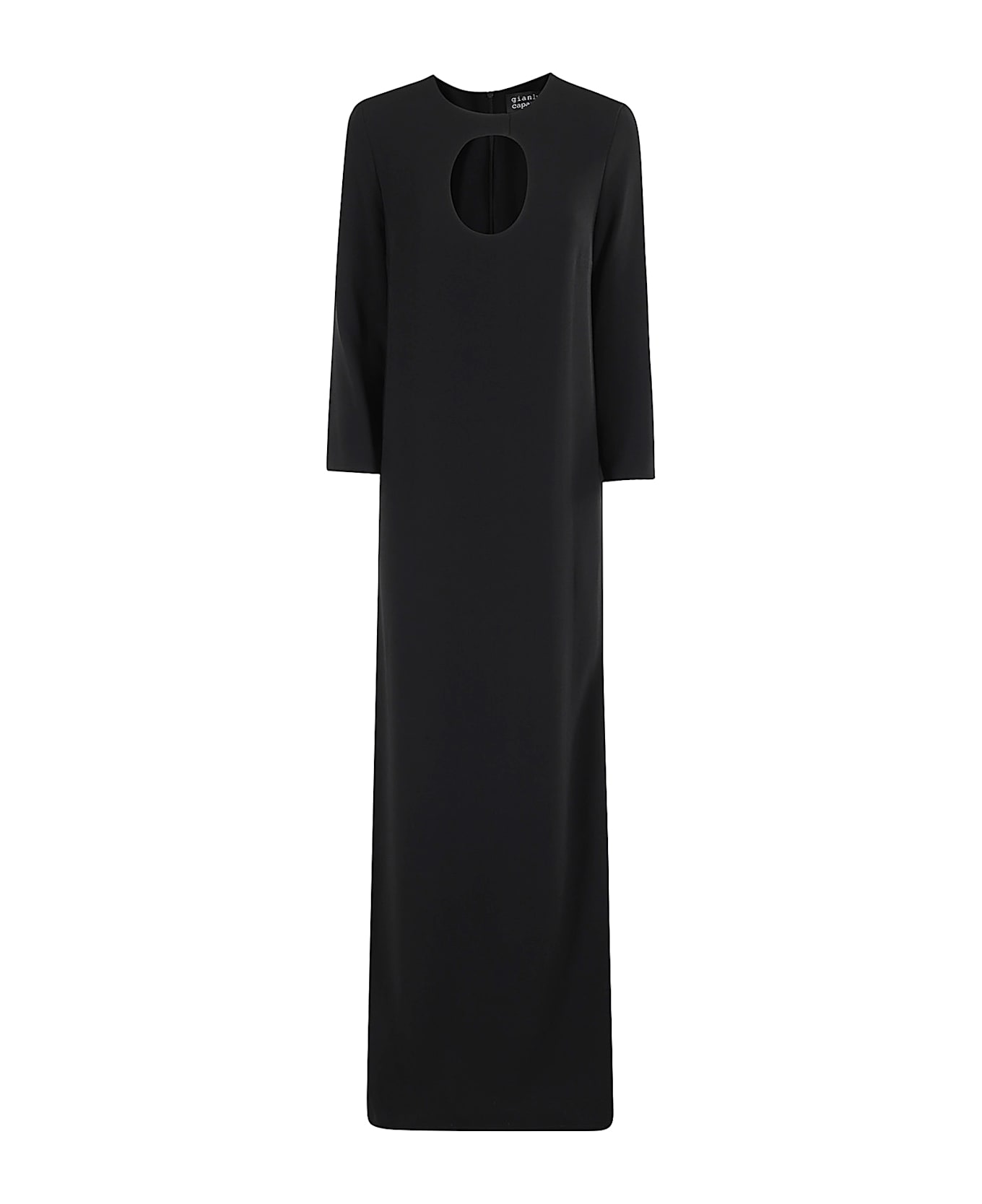 Jean dress - Gianluca Capannolo - Black color - Crew neck - Cut-out insert at front - 3/4 sleeve - Double side slit with zipper - Straight line - Back zipper closure - Floor length - Regular fit