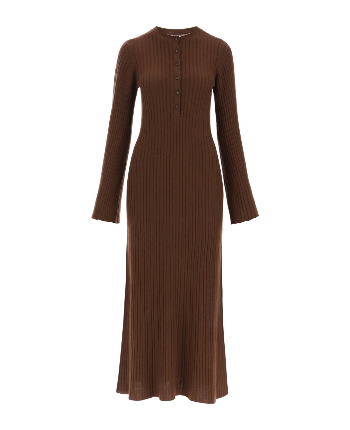 Long A-line dress by Loulou Studio crafted in lightweight ribbed stretch wool and cashmere knit. It features long bell sleeves, ribbed crew neck and front button placket. Slim fit. The model is 177 cm tall and wears a size XS.